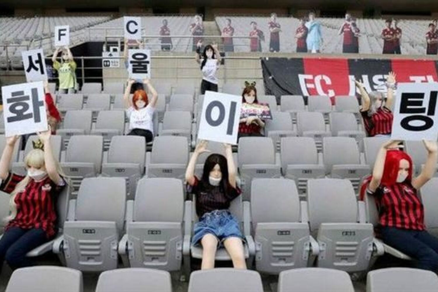 As bonecas foram colocadas sentadas nos lugares dos espetadores, com máscara, e 'assistiram' à vitória por 1-0 do FC Seoul na receção ao Gwangju FC, para a segunda jornada da liga sul-coreana, com um golo de Han Chan-Hee, aos 67 minutos