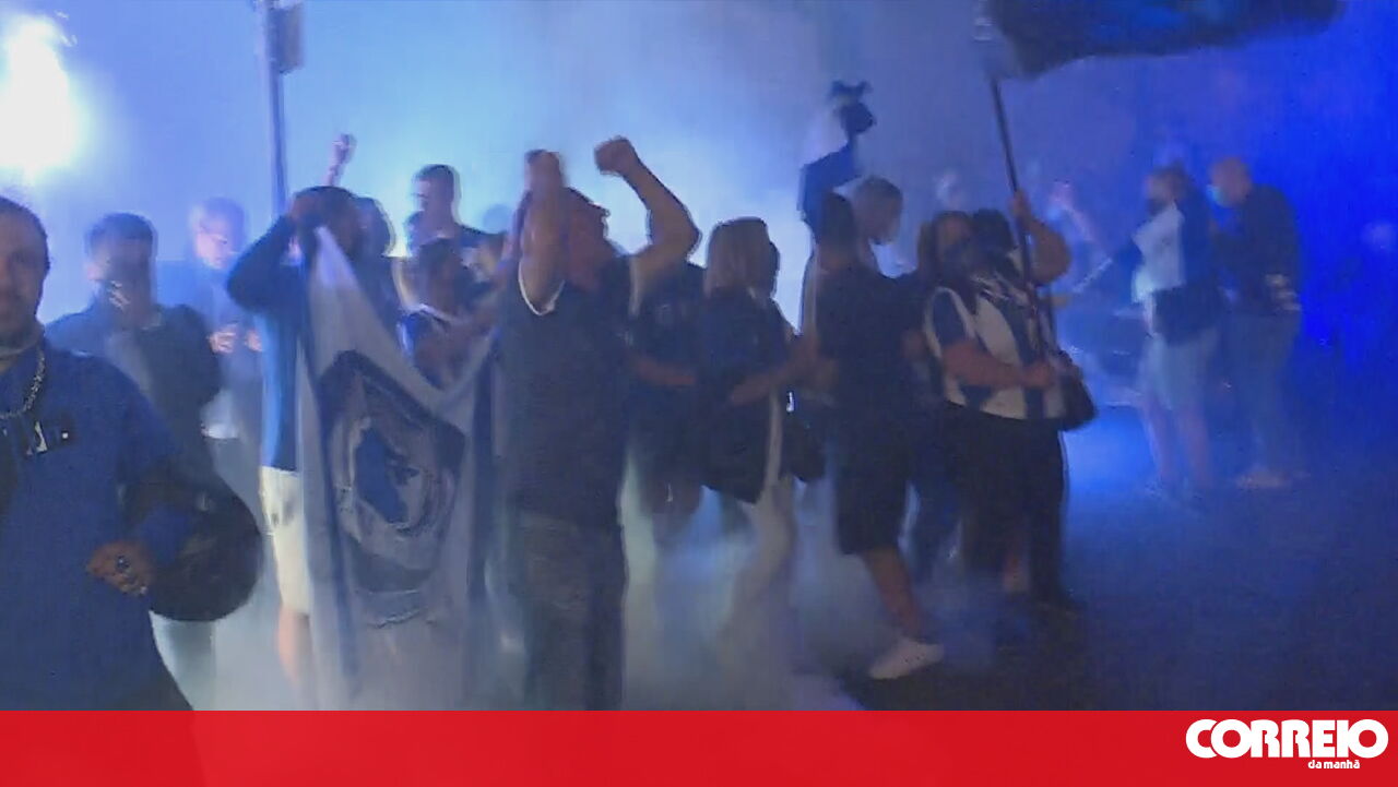 Dezenas de adeptos recebem em euforia autocarro do FC Porto no Estádio do Dragão
