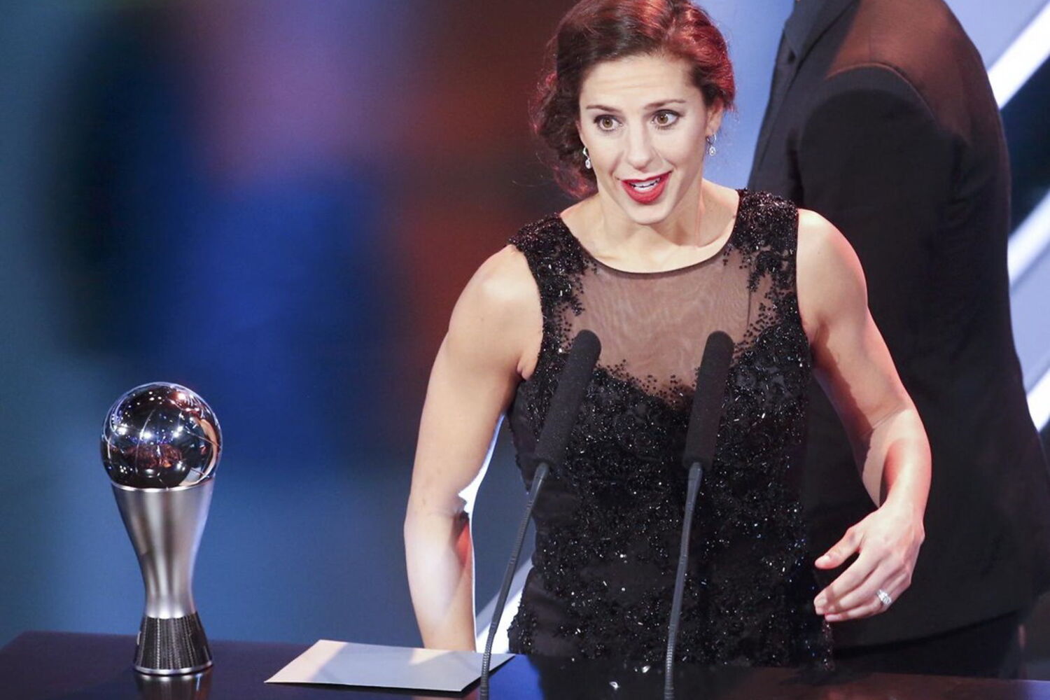 A veterana de 34 anos, que foi campeã olímpica em Pequim2008 e Londres2012, assumiu a surpresa em palco pela eleição, já que concorria com a alemã Melanie Behringer, medalha de ouro no Rio2016, e a brasileira Marta, que venceu o troféu por cinco vezes.