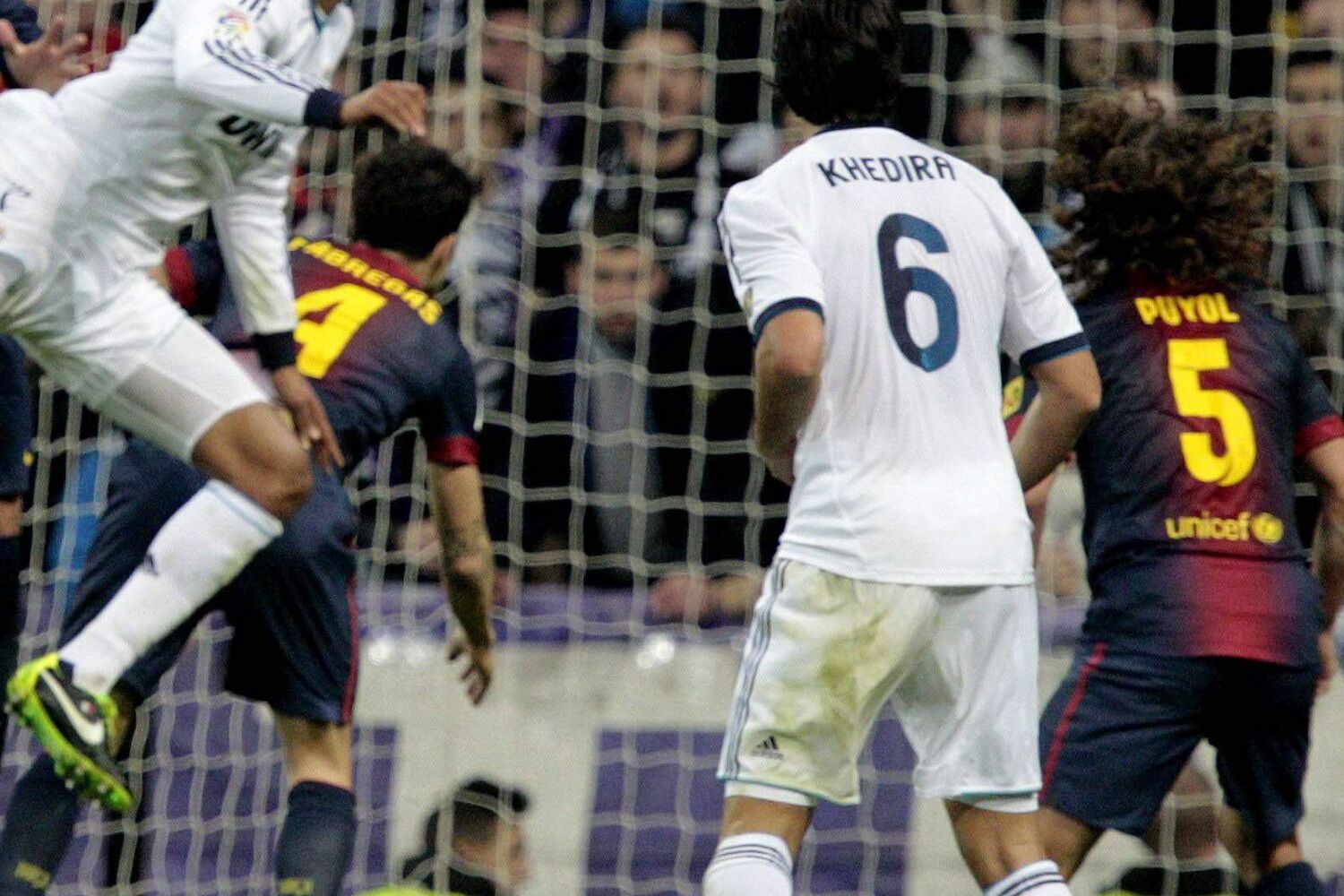 No minuto 35, José Mourinho saltou do banco e protestou efusivamente o lance em que Dani Alves tocou a bola com a mão na área, após centro de Callejón. O árbitro Clós Gómez, no entanto, nada assinalou, apesar dos protestos do técnico e dos jogadores do Real Madrid.