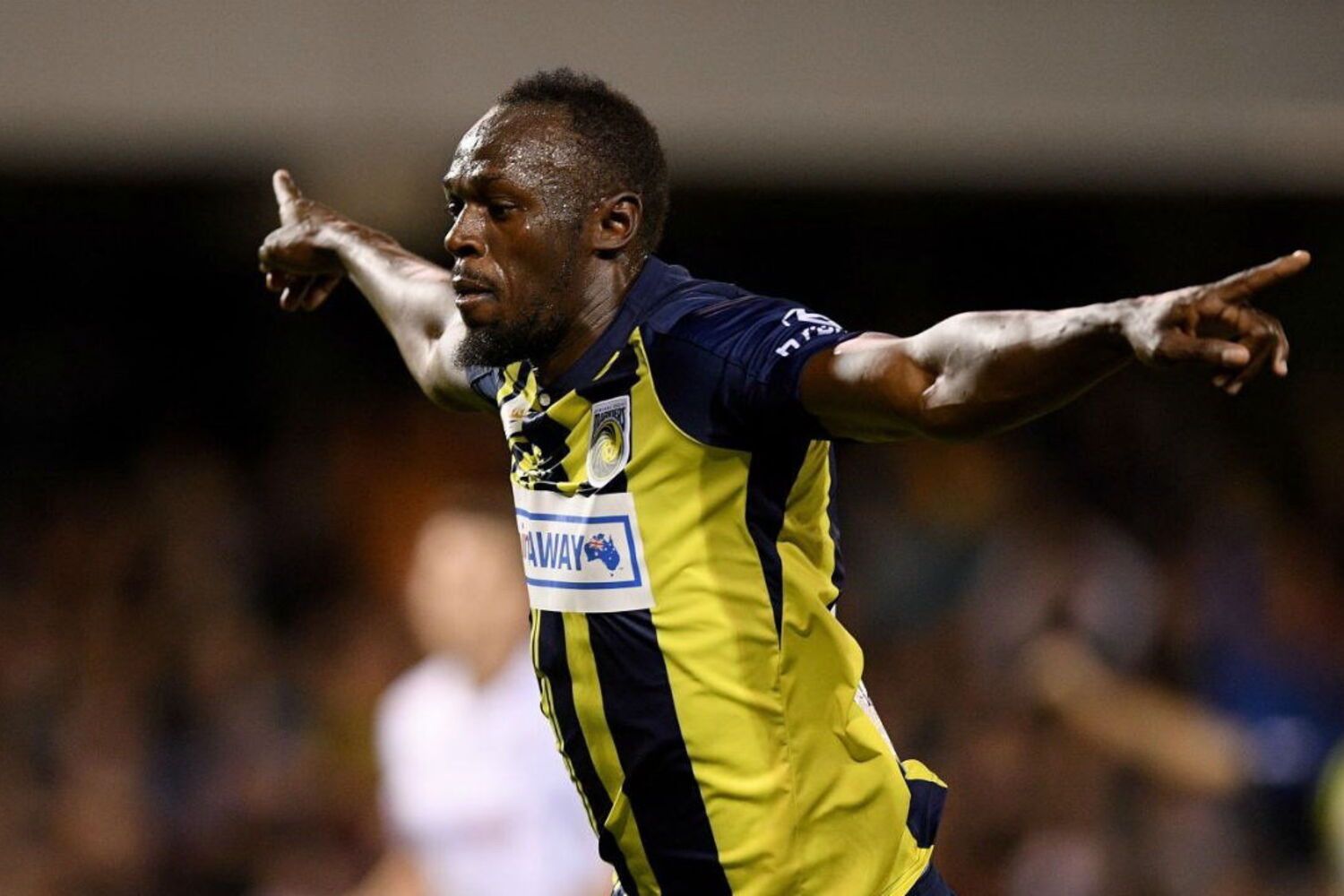 Ex-campeão mundial e olímpico dos 100 e 200 metros esteve em destaque no jogo dos Central Coast Mariners.