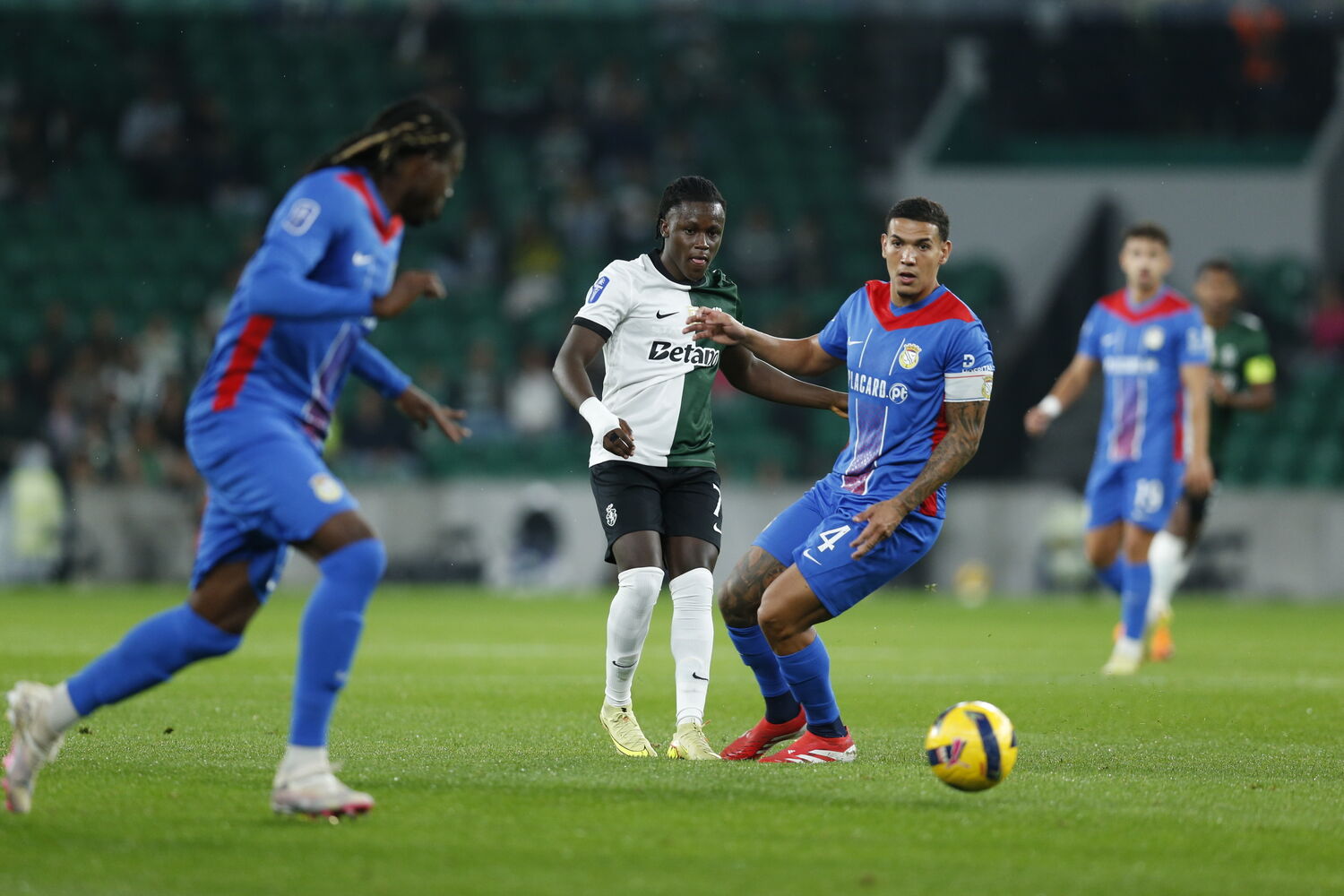 Fora de jogo, Sporting. Matheus Reis tentou um passe em profundidade que encontrou Ricardo Mangas em posição irregular.