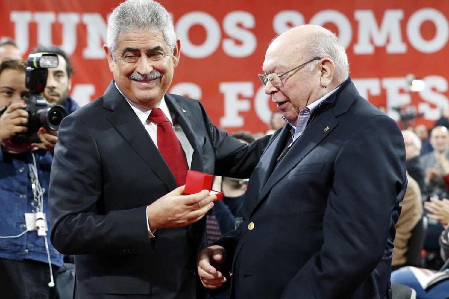 Cerca de 500 adeptos cantaram ainda os parabéns à antiga glória do clube, José Augusto (81 anos). "É um Benfica com memória", disse Vieira.