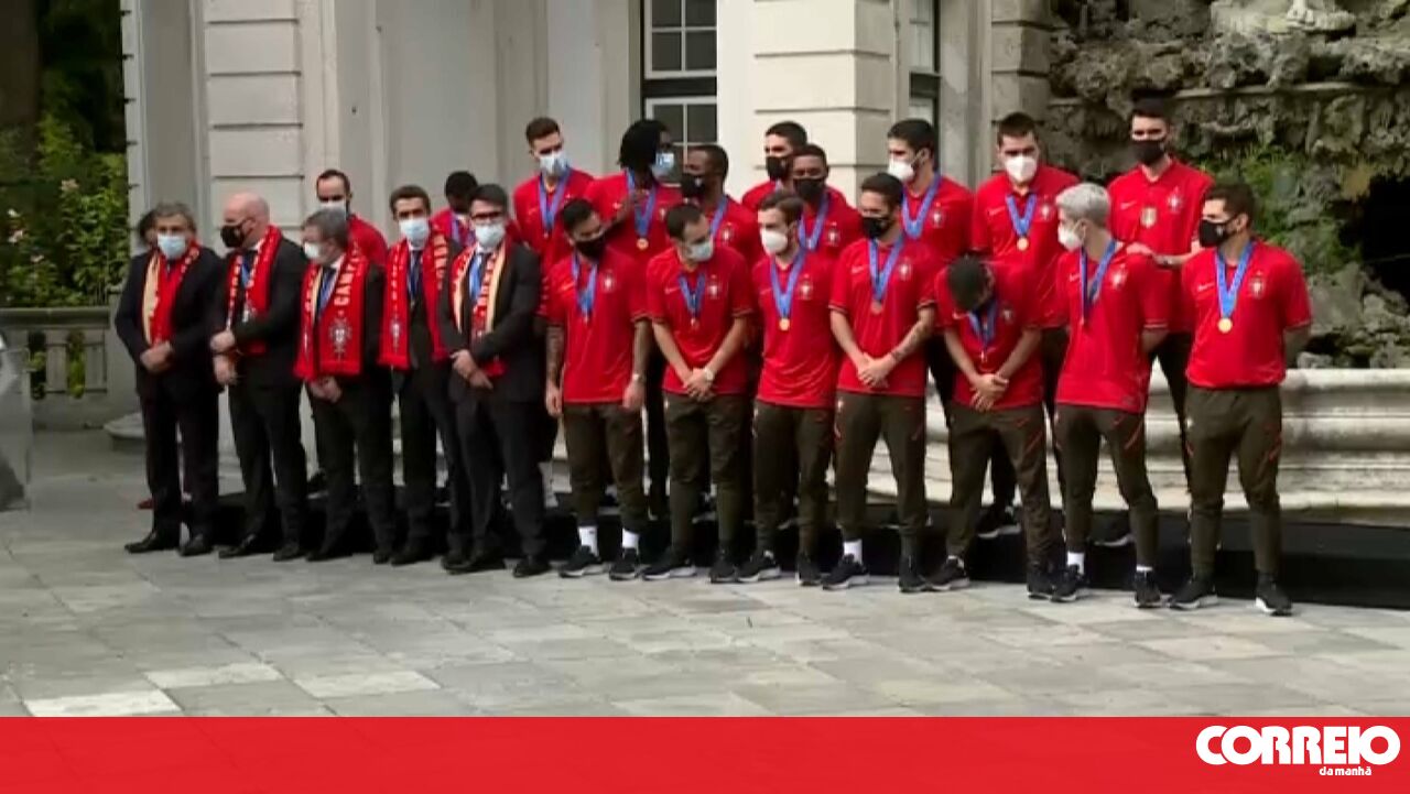 Os atletas da seleção nacional de futsal foram recebidos esta segunda-feira, no Palácio de Belém, em Lisboa, para serem condecorados pelo Presidente da República após vencerem o mundial de futsal 2021.