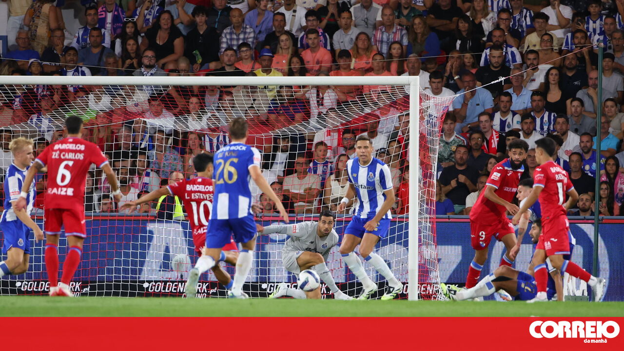 Na cobrança do pontapé livre, Luís Esteves tentou surpreender com um remate rasteiro, mas a bola saiu fraca para defesa fácil de Diogo Costa.