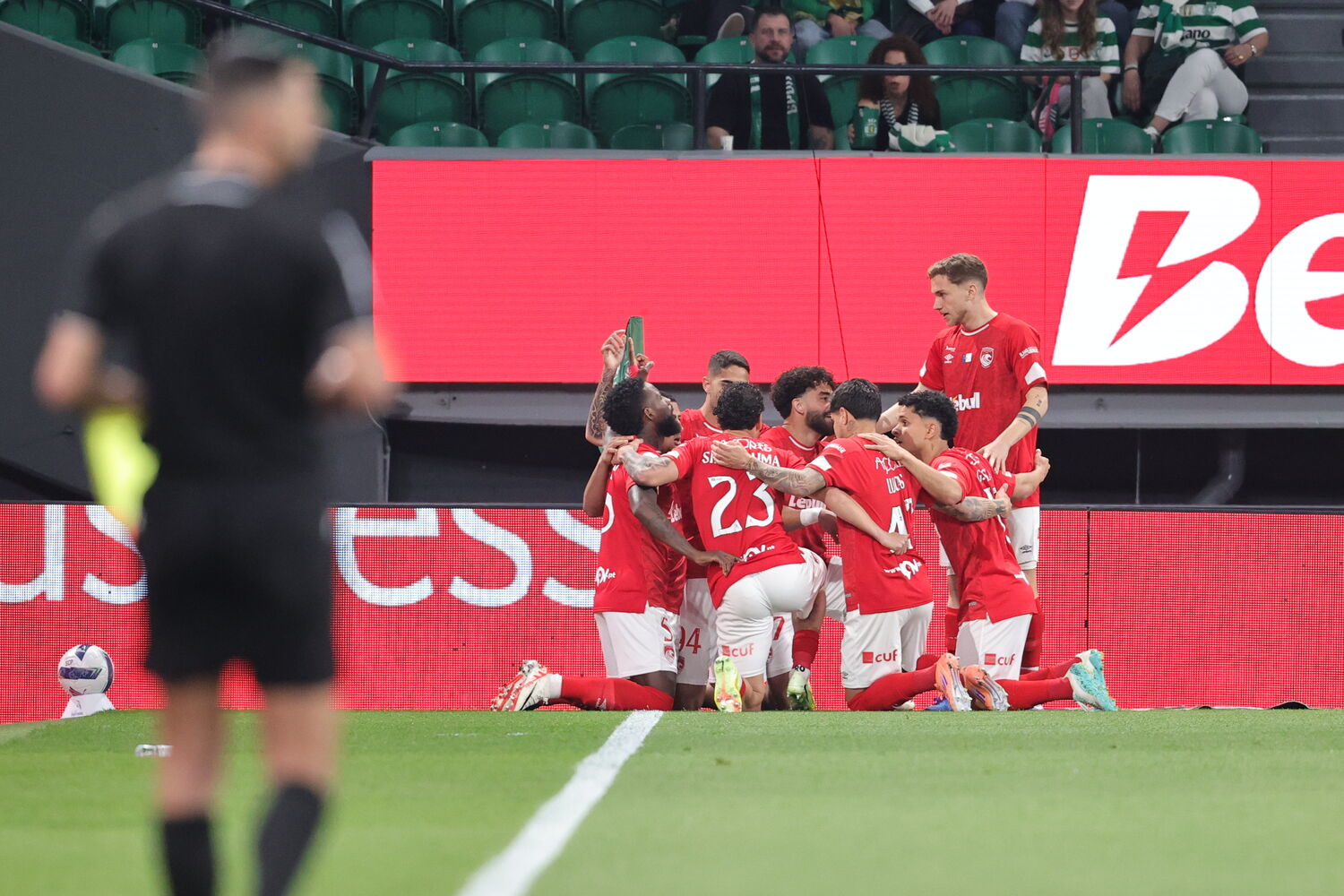 ONZE DO SPORTING: Rui Silva; Georgios Vagiannidis, Eduardo Quaresma, Debast e Ricardo Mangas; Morita, Daniel Bragança, Geny Catamo, Trincão e Pote; Rafael Nel