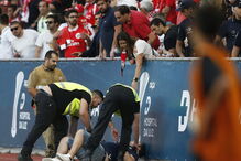 Momento do empurrão a adepto do Benfica que fraturou vértebra