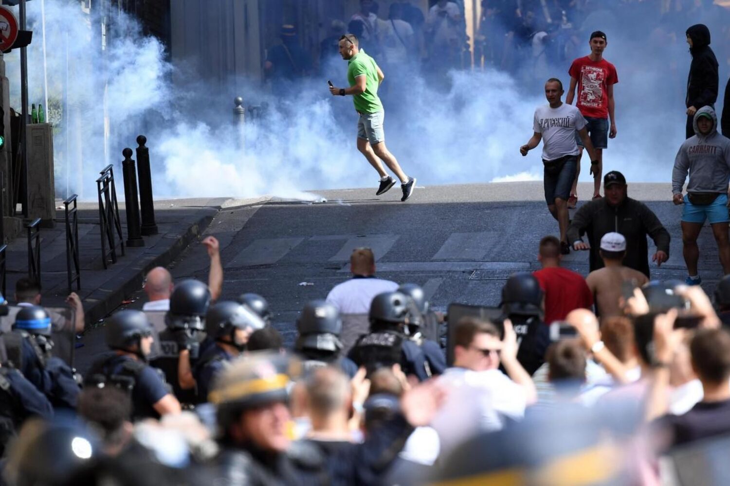 Às 21h00 locais (20h00 em Lisboa), quando começava o jogo, considerado um dos mais arriscados do campeonato europeu 2016, os bombeiros registavam 19 feridos nos confrontos junto da zona do Vieux-Port.