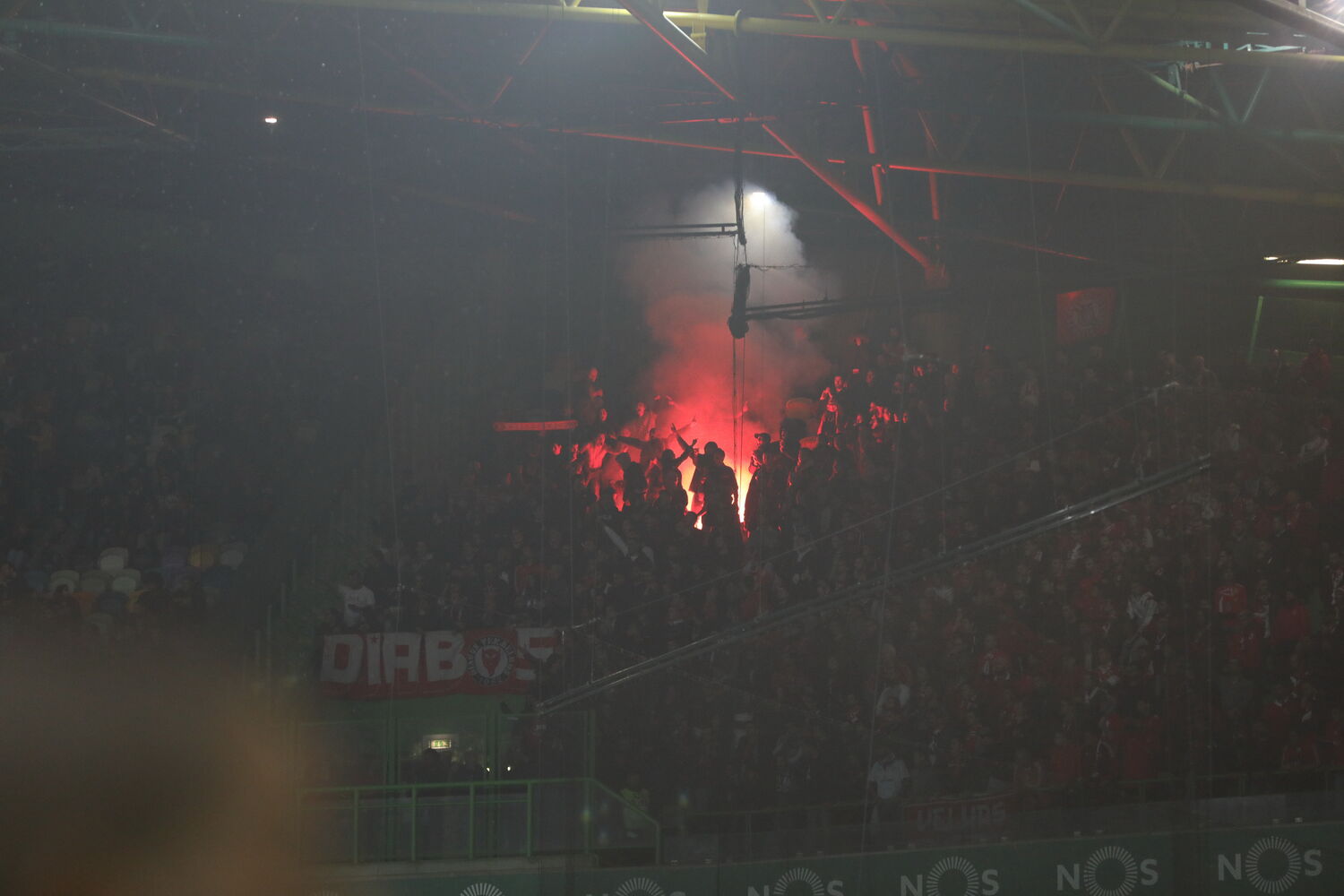 20h59 - Um adepto que ia assistir ao dérbi foi identificado pela PSP momentos depois da entrada das claques no Estádio de Alvalade, sabe o CM. Homem foi, por momentos, algemado por comportamentos inadequados.
