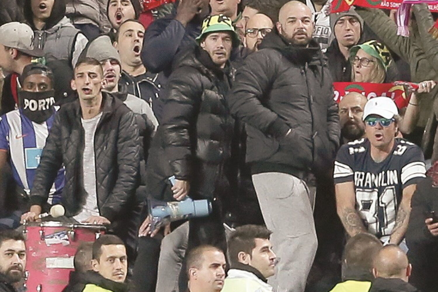 Fernando Madureira (chefe dos Super Dragões) e Samico (Juventude Leonina) lideraram, no recinto encarnado, o apoio a Portugal sem deixar de dirigir palavras ofensivas para os adeptos encarnados.