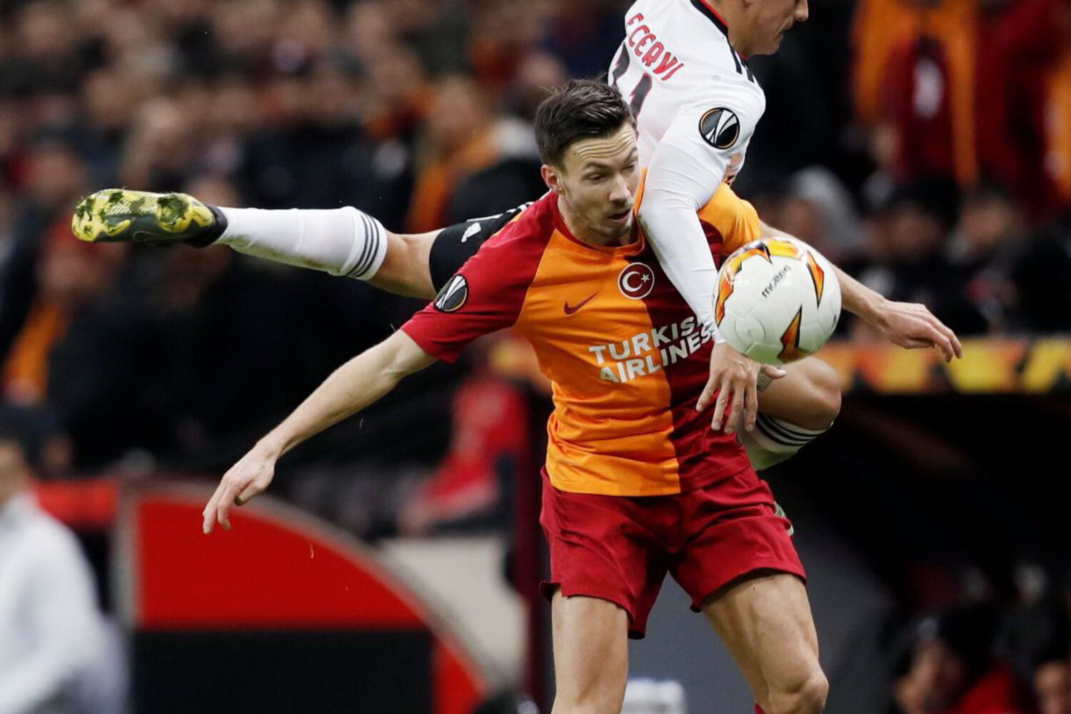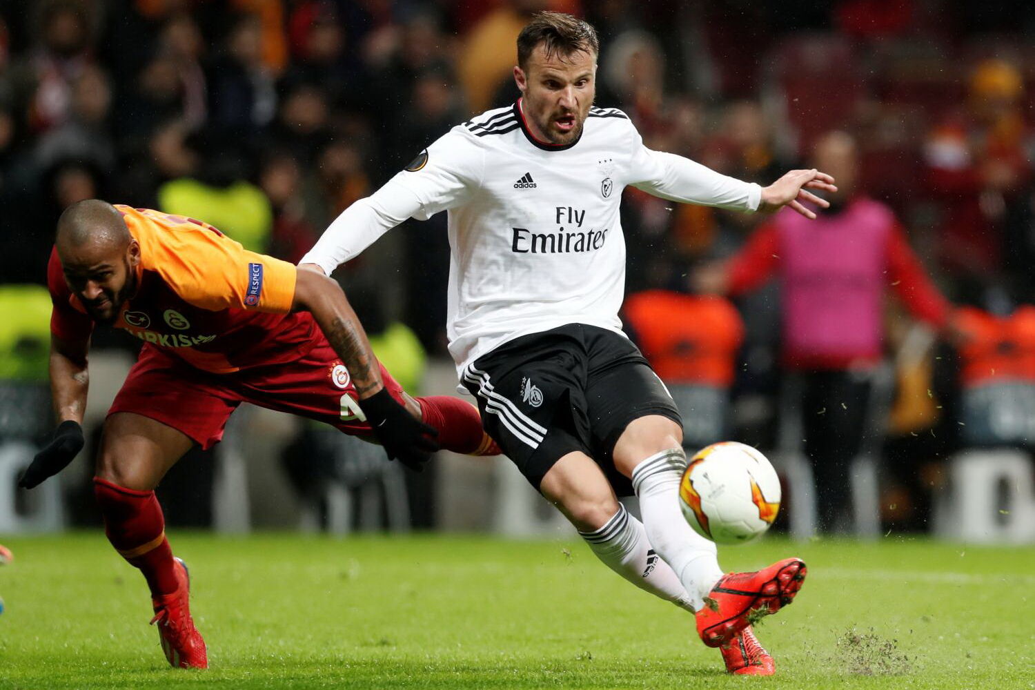 Na área do ‘Gala’, Seferovic e João Félix iam apertando os fracos defesas-centrais que sempre que podiam complicavam aquilo que parecia fácil. Yuri Ribeiro (26’) cruzou da esquerda com Marcão a cortar com o braço, no entendimento do árbitro. Salvio chamado à conversão da grande penalidade não falhou. Vantagem justa das águias no inferno turco.