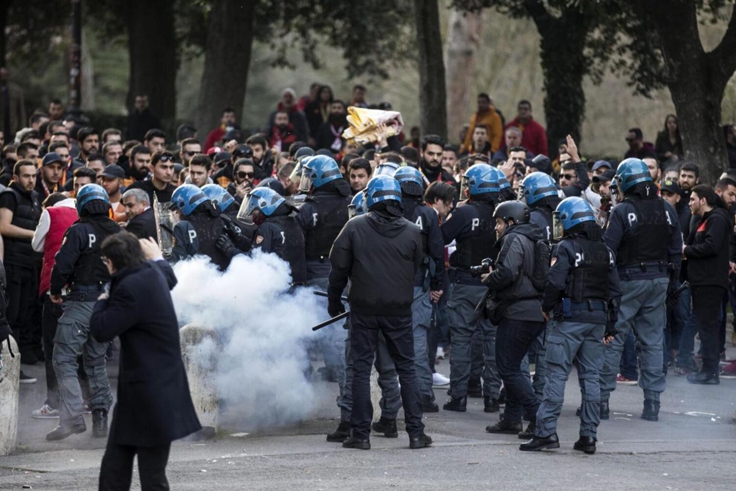Segundo o site do Gazzetta dello Sport, perto de 300 turcos iniciaram festejos com pirotecnia e fumígenos na Piazza Popolo, um dos locais de encontro perto do Estádio Olímpico.