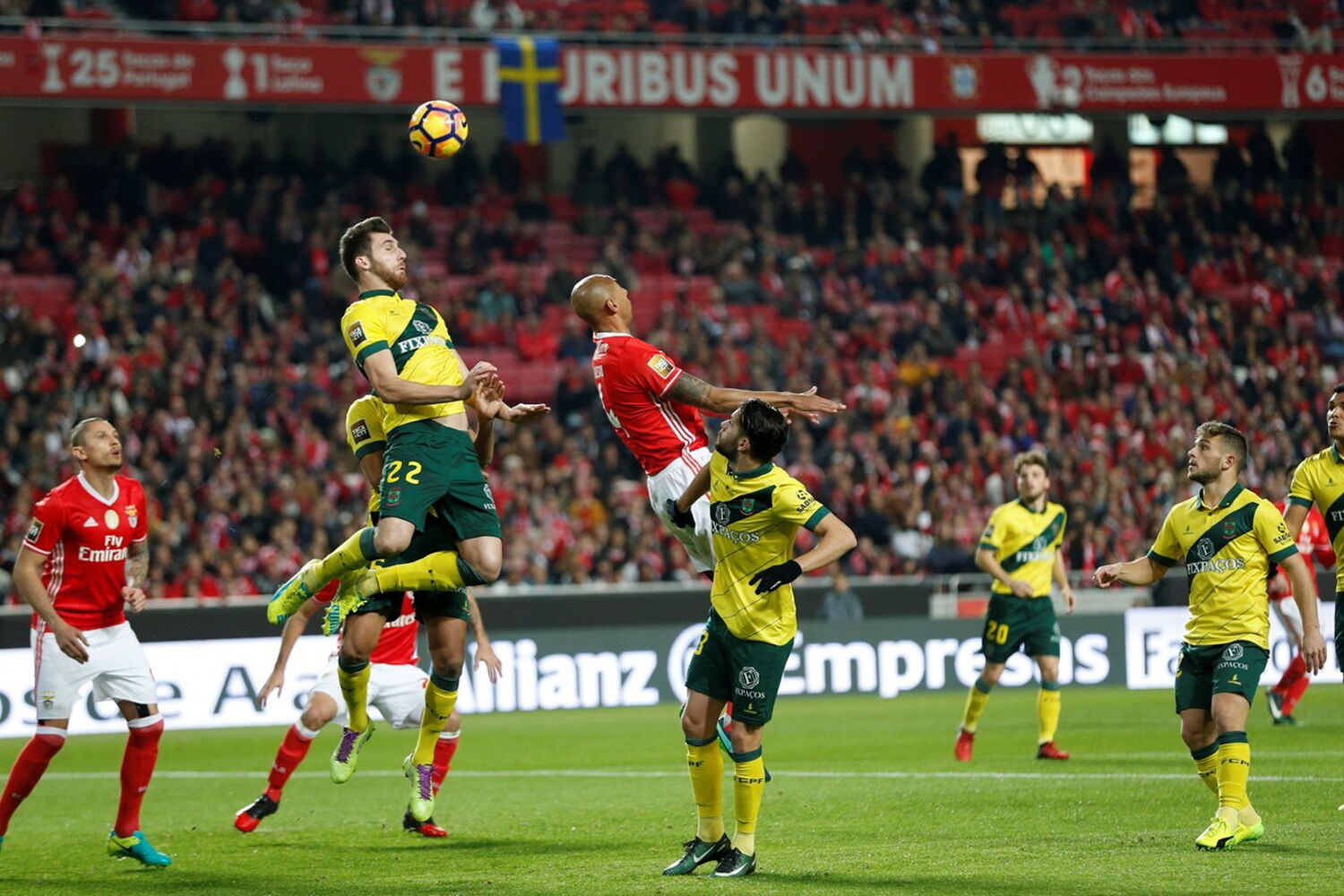 A irreverência de Cervi ia deixando a cabeça em água dos defesas pacenses, mas foi de Celis o primeiro sinal de perigo. Um bomba de fora da área a obrigar Mário Felgueiras a defesa vistosa. O Benfica não levantava o pé e os pacenses nem conseguiam respirar. Jiménez isolou Rafa, que optou por fazer um chapéu que Felgueiras defendeu (12’).