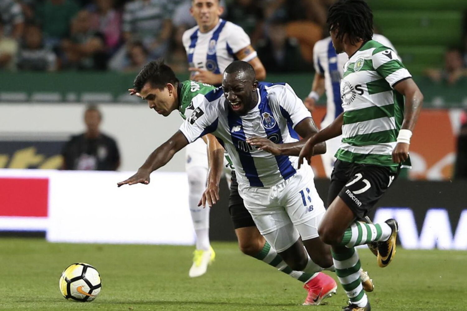 44’ – Cruzamento de Alex Telles com desvio de Marega para a trave. Aboubakar tenta a recarga de cabeça para grande defesa de Patrício