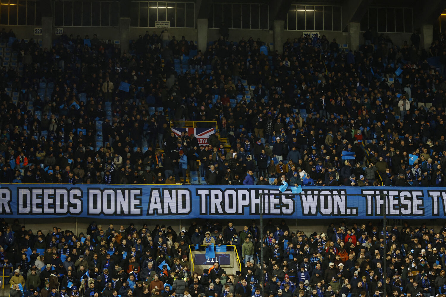 O jogo já foi retomado com o canto para o Club Brugge.