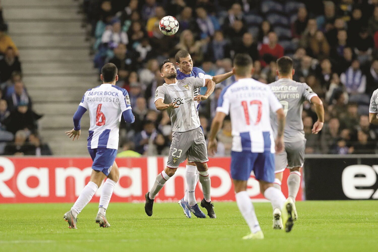 E o lance mais perigoso desta segunda parte pertenceu a Pepe. O defesa-central subiu alto, no canto de Alex Telles, e cabeceou para a defesa da noite de Aflalo, um estreante na Liga.