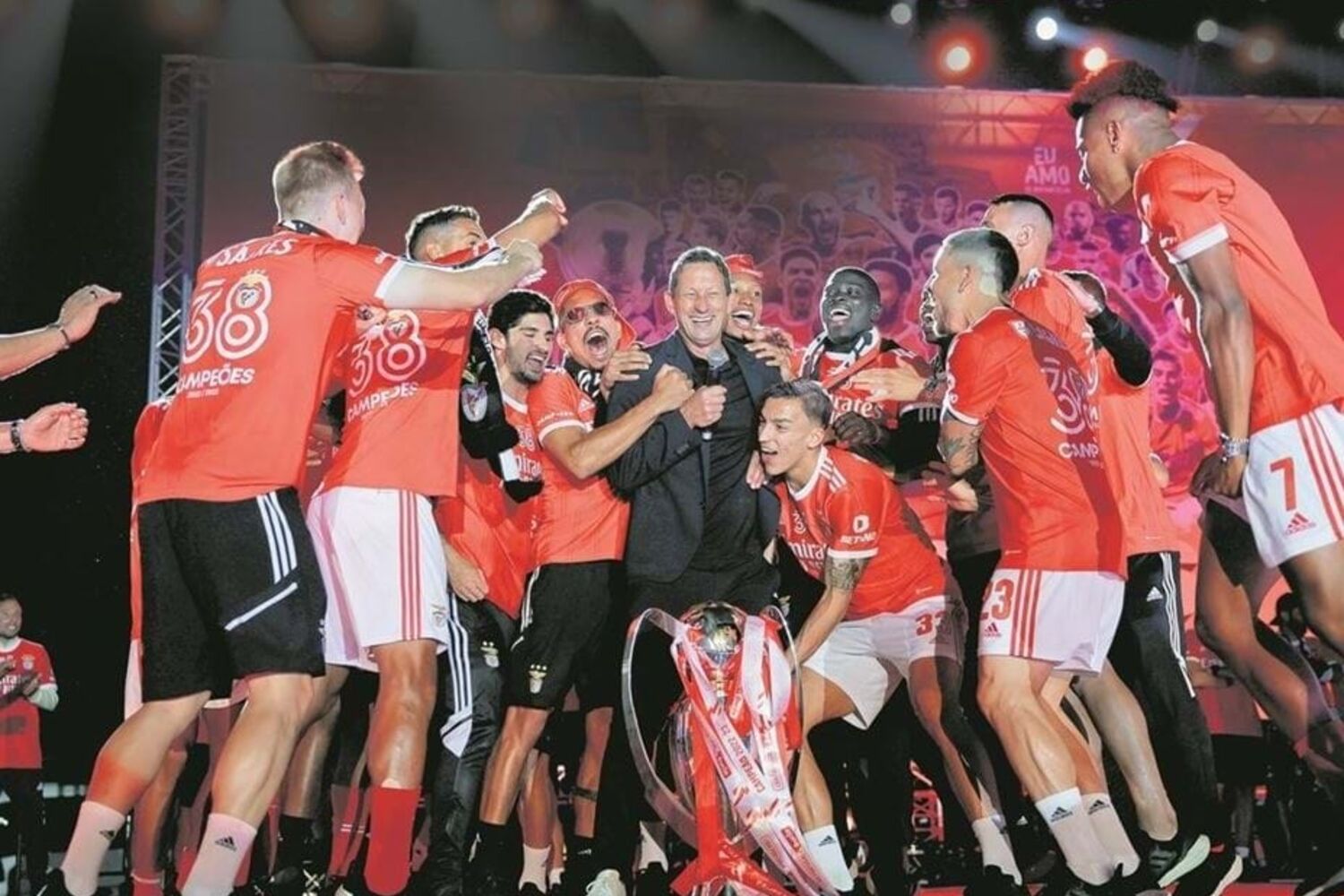 As celebrações da equipa do Benfica, no coração de Lisboa, prolongaram-se na madrugada desde domingo até perto das três horas da manhã. O plantel saiu do Estádio da Luz integrado numa comitiva de vários autocarros (com familiares, staff, patrocinadores, etc.) já depois da meia-noite e chegou ao Marquês de Pombal, num outro autocarro (espécie de ‘trio elétrico’) cerca da 01h30. Na emblemática praça lisboeta já estavam cerca de 150 mil adeptos em euforia, animados por um programa de diversões que esteve em segredo até se saber que o Benfica era campeão e que incluiu atuações dos Anjos e de António Manuel Ribeiro, vocalista do UHF, todos eles assumidos adeptos do Benfica.