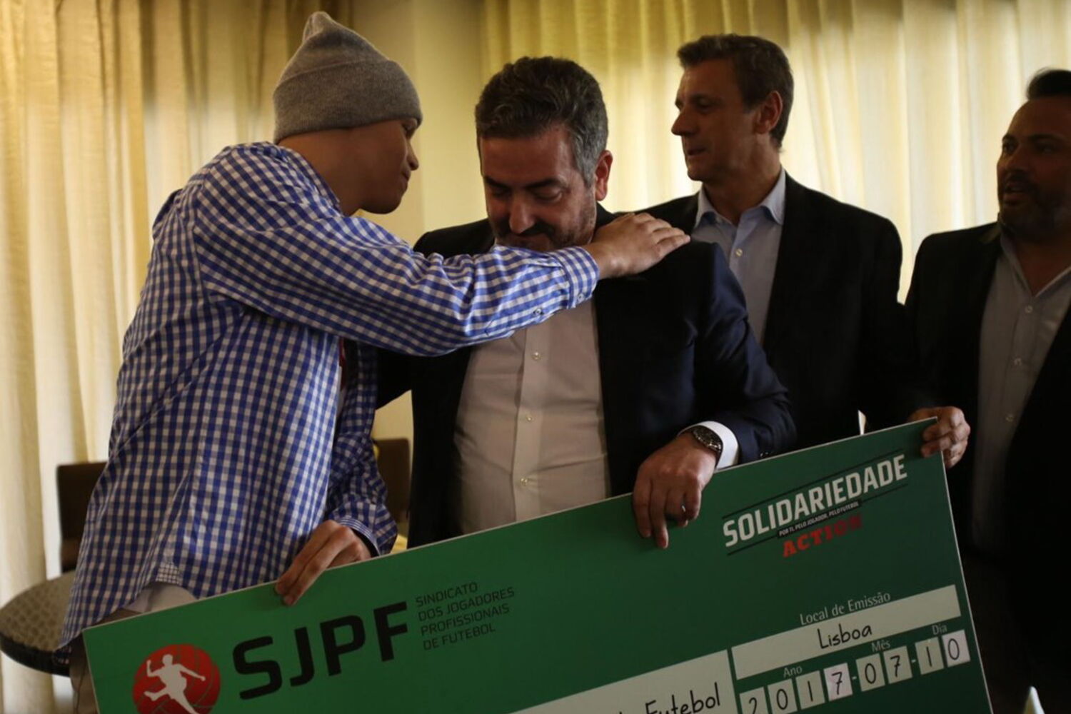 "O Edu sabe que pode contar connosco e em tudo o que necessitar terá o nosso apoio, mas queríamos fazer-lhe esta entrega simbólica", disse Joaquim Evangelista, sublinhando que o SJPF pretende "estar ao lado daqueles que mais precisam, sobretudo nos momentos de dificuldade".