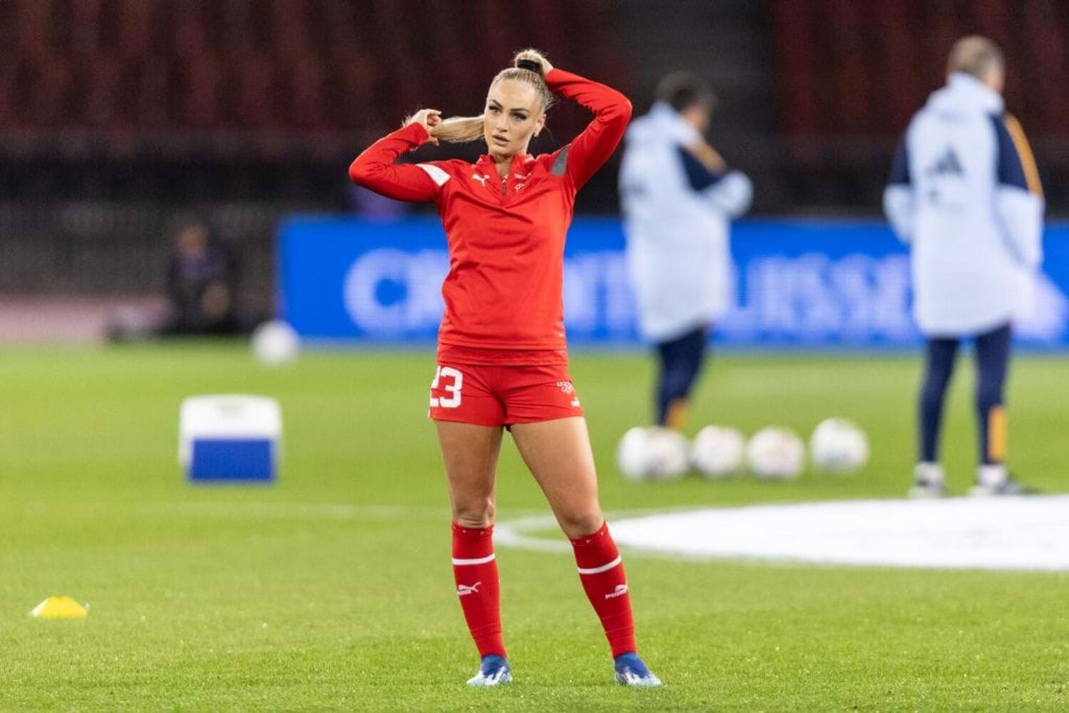 Alisha Lehmann, de 24 anos, já namorou com o futebolista brasileiro Douglas Luiz e com a colega de seleção Ramona Bachman.
