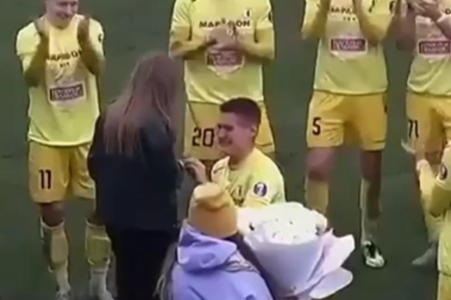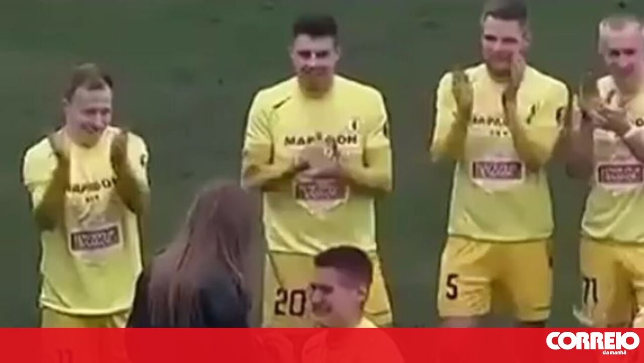 O futebolista Vladislav Shubovic decidiu, este sábado, fazer um pedido de casamento à namorada durante o jogo do FK Smorgon com o Volna, para a 2ª divisão da Bielorrússia.