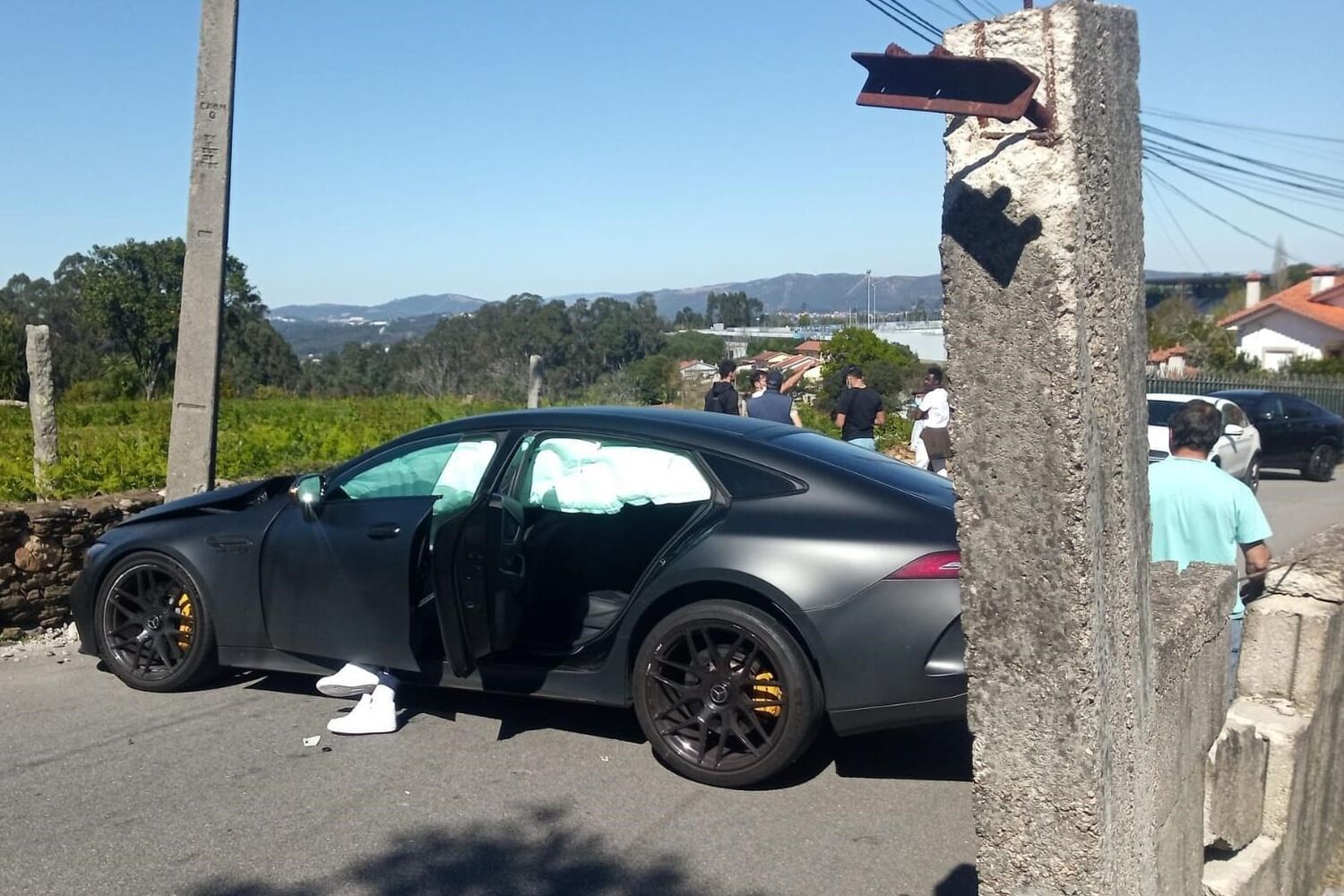 Carro do jogador do FC Porto, Sarr, destruído após acidente à saída do Olival