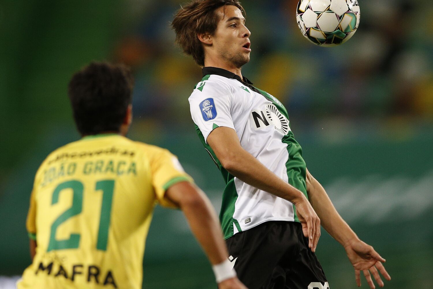 análise+Jogada do primeiro goloDaniel Bragança ganhou um lance no meio-campo do Mafra. Virou-se para a esquerda e meteu um grande passe em Nuno Mendes, que de primeira assistiu Sporar, solto na área. O croata só teve de empurrar a bola para a baliza.