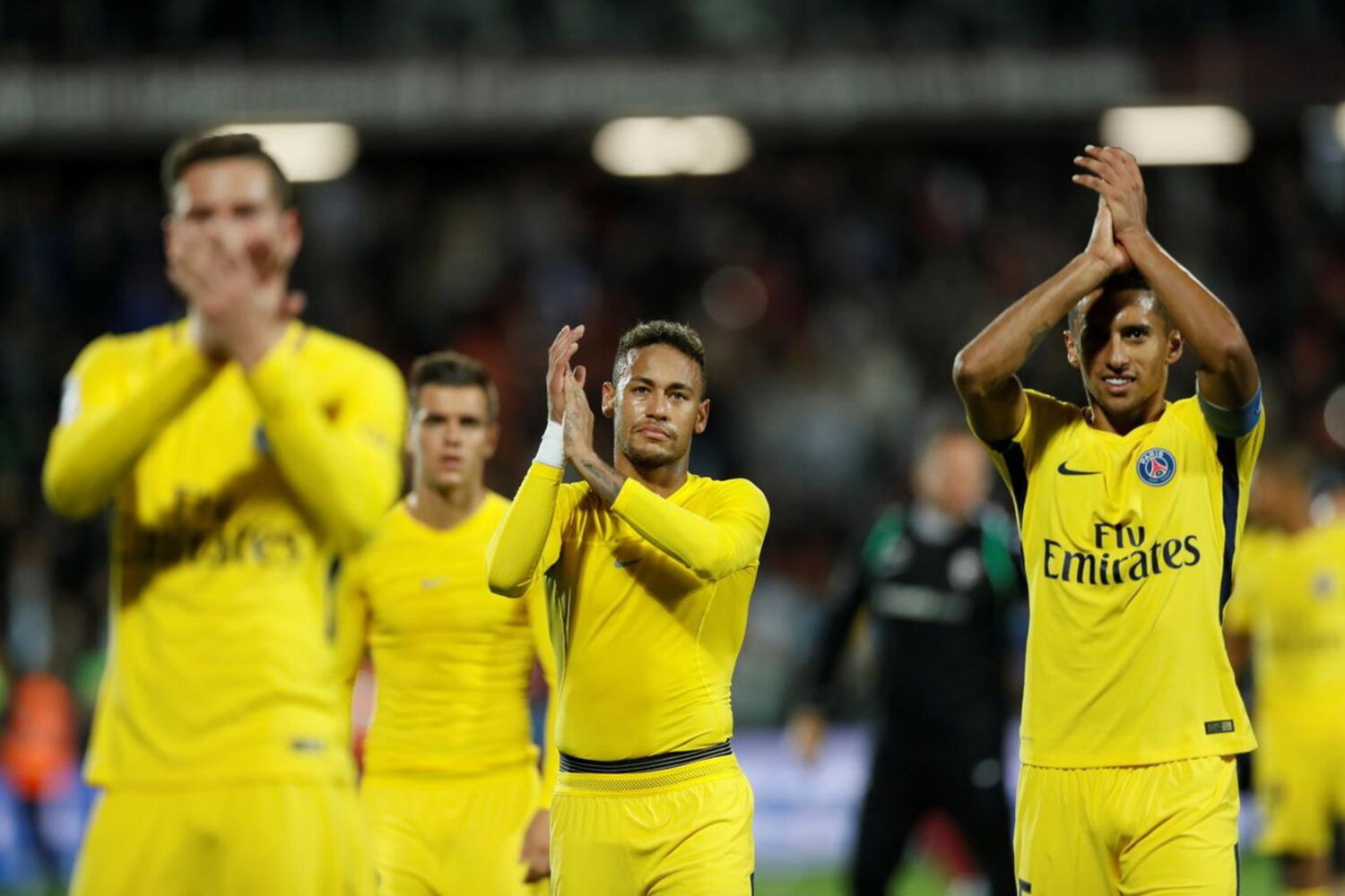 O brasileiro Neymar, aos 69 minutos, Cavani, que 'bisou', aos 75, e o também 'canarinho' Lucas Moura (87) completarem a goleada dos parisienses.