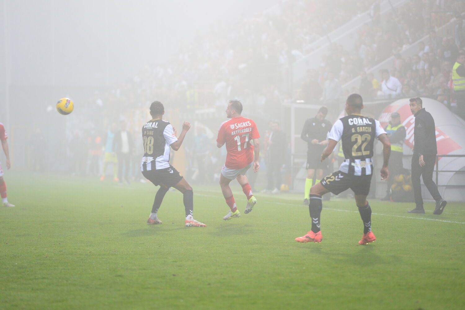 Remate defendido no lado esquerdo da baliza. Kerem Aktürkoglu (Benfica) remate com o pé direito no coração da área para grande intervenção de Lucas França, que se atirou para o lado direito e conseguiu evitar que a bola entrasse na baliza.