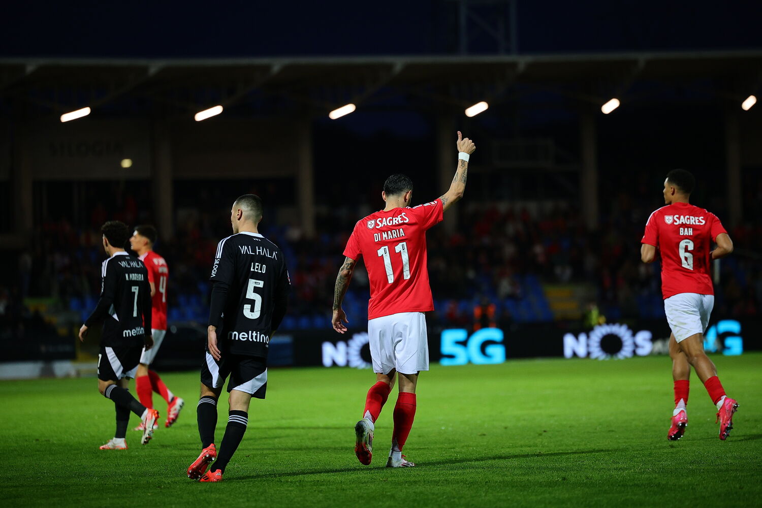 Di María remata de pé esquerdo, mas a tentativa é rapidamente bloqueada pela defesa do Casa Pia.