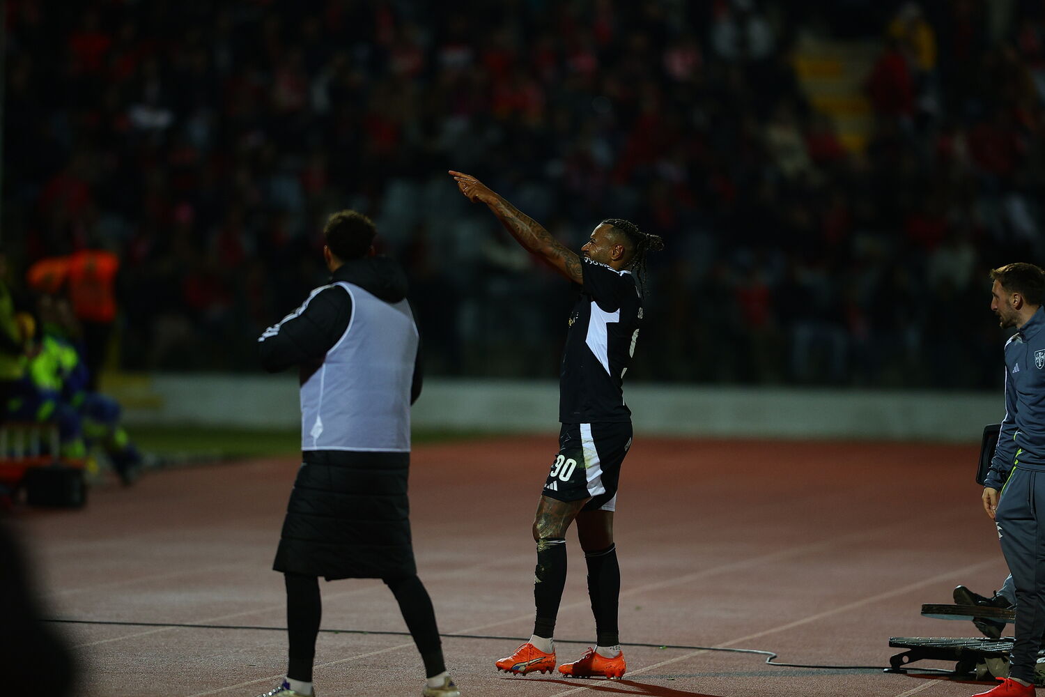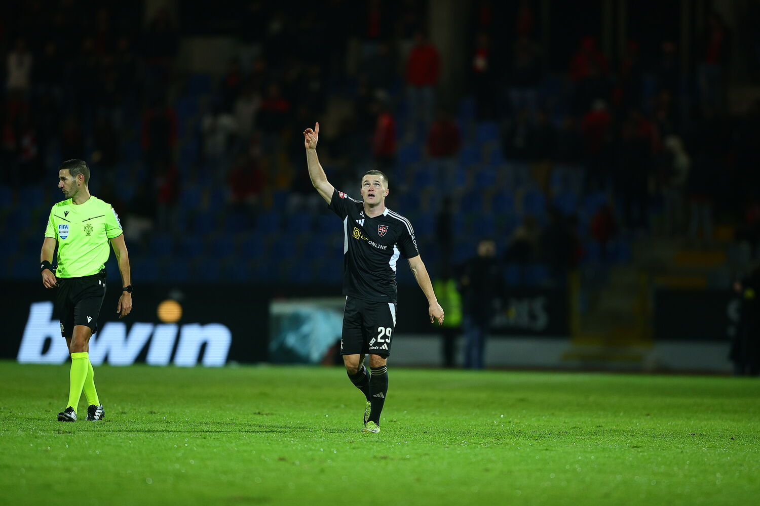 Aktürkoglu remata de fora da área com o pé esquerdo, mas a tentativa sai fraca, com Patrick Sequeira a agarrar a bola de forma tranquila.