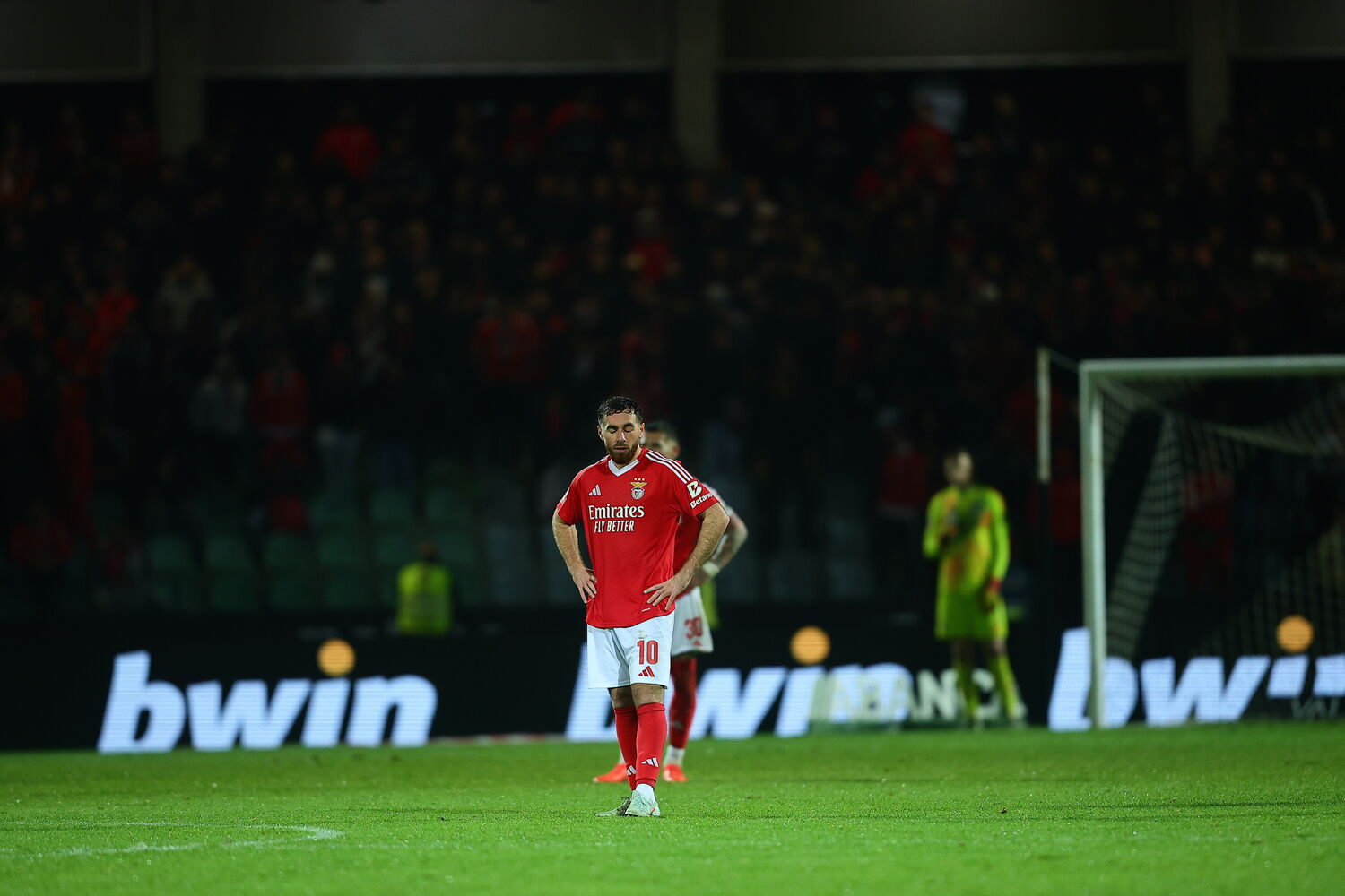 Remate defendido no centro superior da baliza. Arthur Cabral (Benfica) remate com o pé direito do lado direito da área. Assistência de Orkun Kökçü.
