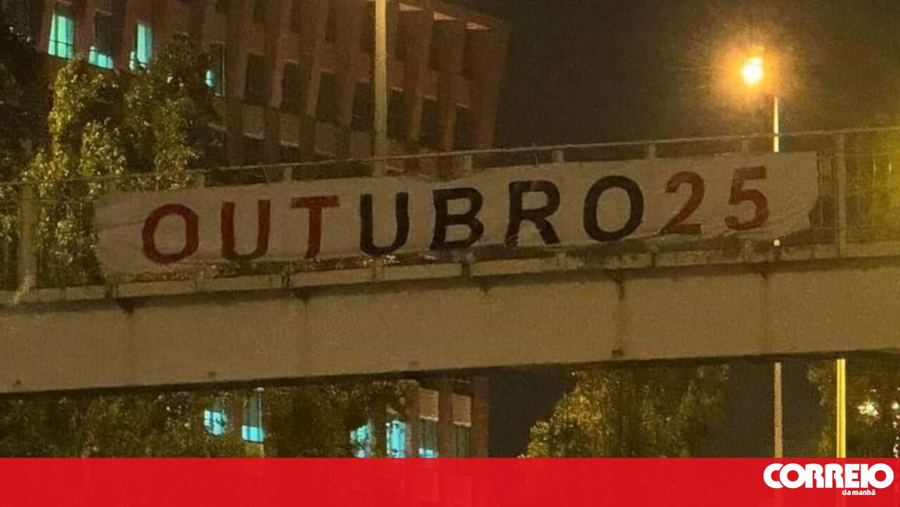 "Outubro 25" é a mensagem escrita na tarja que faz referência à data das eleições do clube das 'águias'.