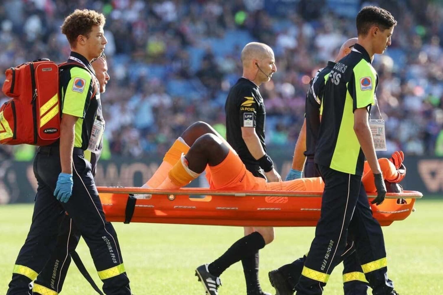 Mory Diaw foi assistido de imediato e transportado de maca para fora do relvado.