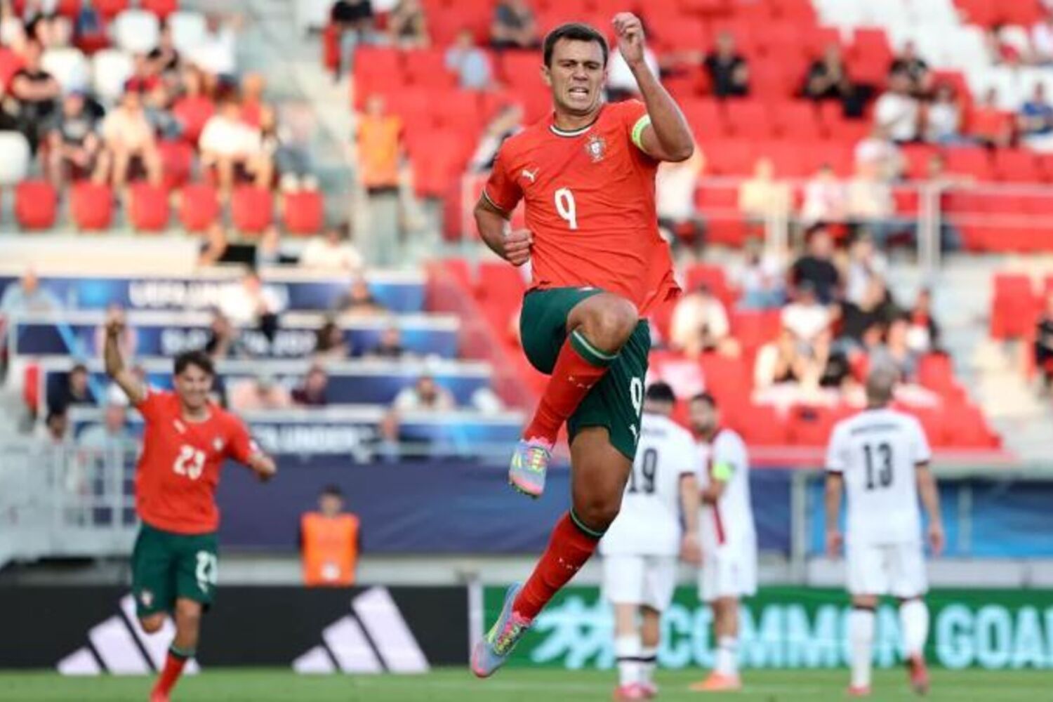 Em Trencin, na Eslováquia, a equipa das 'quinas' inaugurou o marcador aos 24 minutos, por Rodrigo Pinheiro, numa altura em que já jogava em superioridade numérica devido à expulsão de Lasha Odisharia, logo aos cinco, ampliando a vantagem por Geovany Quenda, aos 62, Rodrigo Gomes, aos 87, e Henrique Araújo, aos 90+5, de penálti.