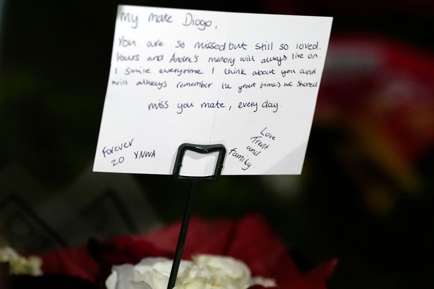 O lateral deixou flores com as cores do clube, um comando de consola de videojogos e uma carta sentida: "A tua recordação e a do André sempre permanecerão vivas. Sorrio cada vez que penso em ti e sempre recordarei os bons momentos que partilhámos. Sinto a tua falta, amigo, em cada dia".