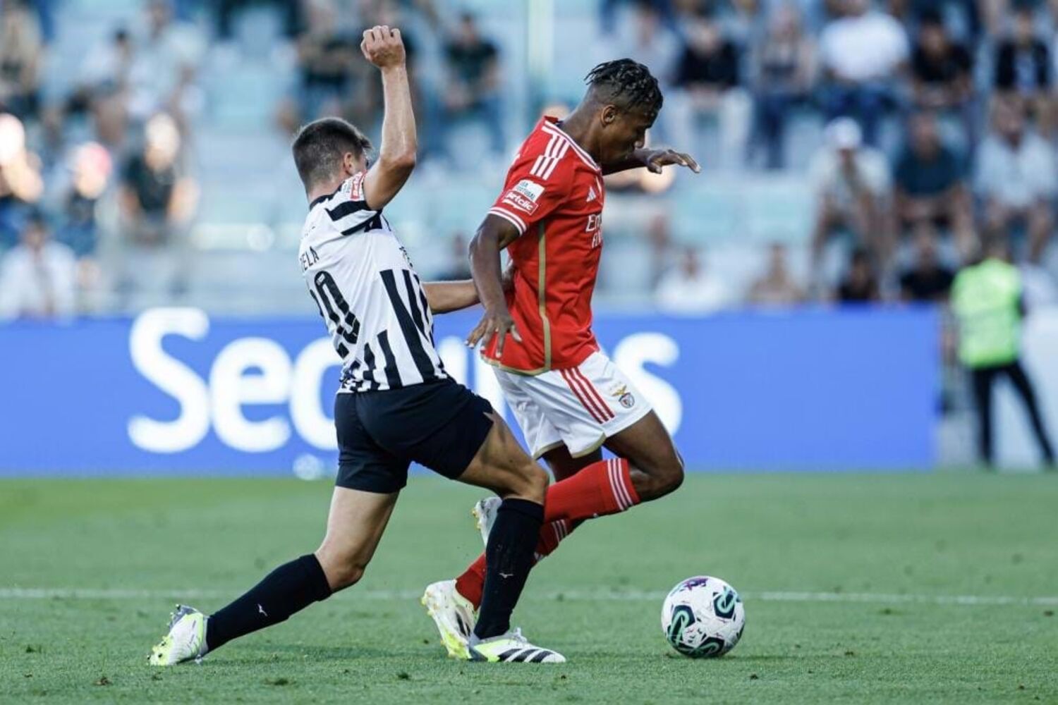 Partida interrompida devido a lesão de Alexander Bah (Benfica).