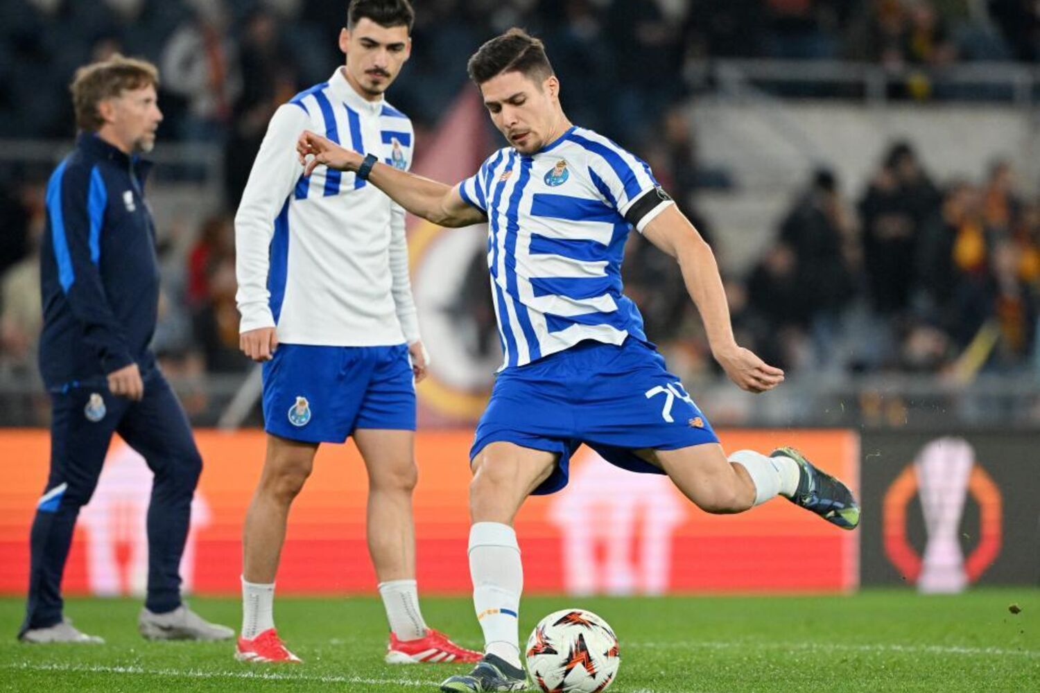 Golo! Roma 0, Porto 1. Samu Aghehowa (Porto) remate com o pé direito no coração da área ao ângulo superior esquerdo. Assistência de Fábio Vieira de cabeça.