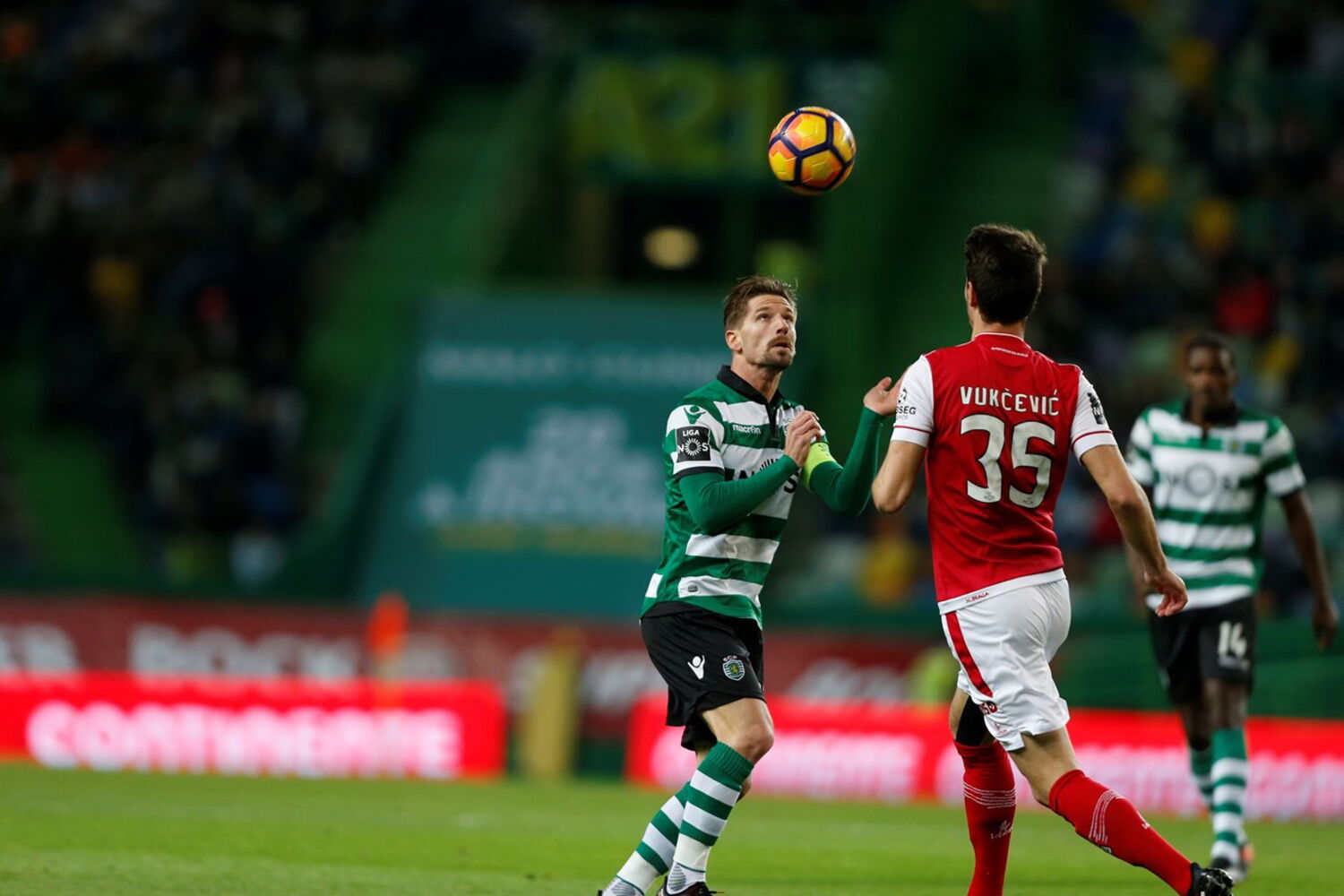 O Sporting recebe esta noite em Alvalade o Braga, em encontro a contar para a 14ª jornda da I Liga. As duas equipas estão separadas por um ponto na tabela classificativa, com o Sporting em terceiro com 27 pontos e o Braga em quinto com 26. O Guimarães venceu este domingo o Setúbal e igualou, provisoriamente, a pontuação do Sporting.