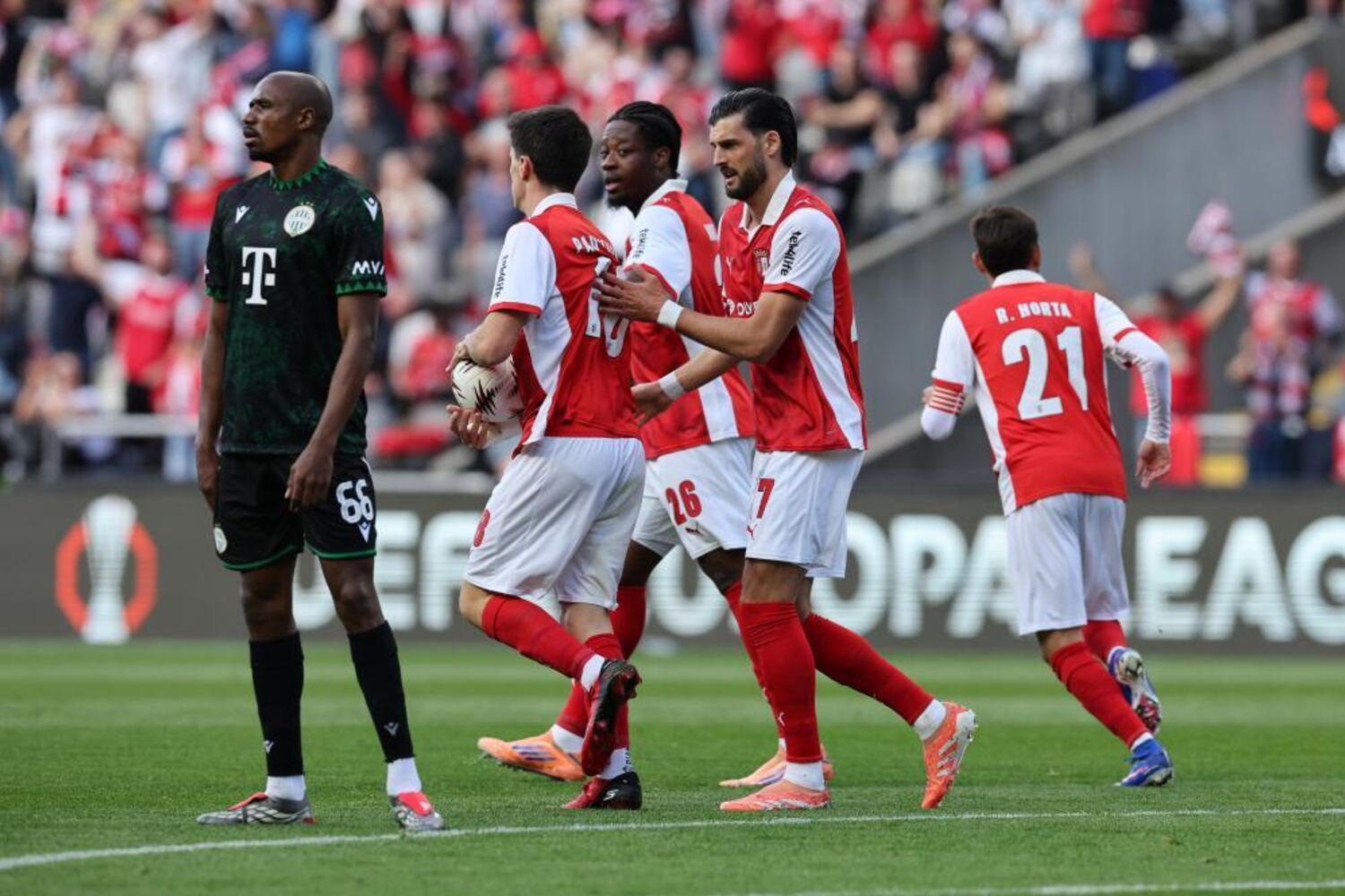 Os minhotos, que tinham perdido por 2-0 na Hungria, inverteram o rumo da eliminatória com golos de Ricardo Horta (11 e 53 minutos), do austríaco Florian Grillitsch (15) e do espanhol Gabri Martínez (34), para confirmarem a presença nos ‘quartos’ da prova europeia pela quarta vez na história.