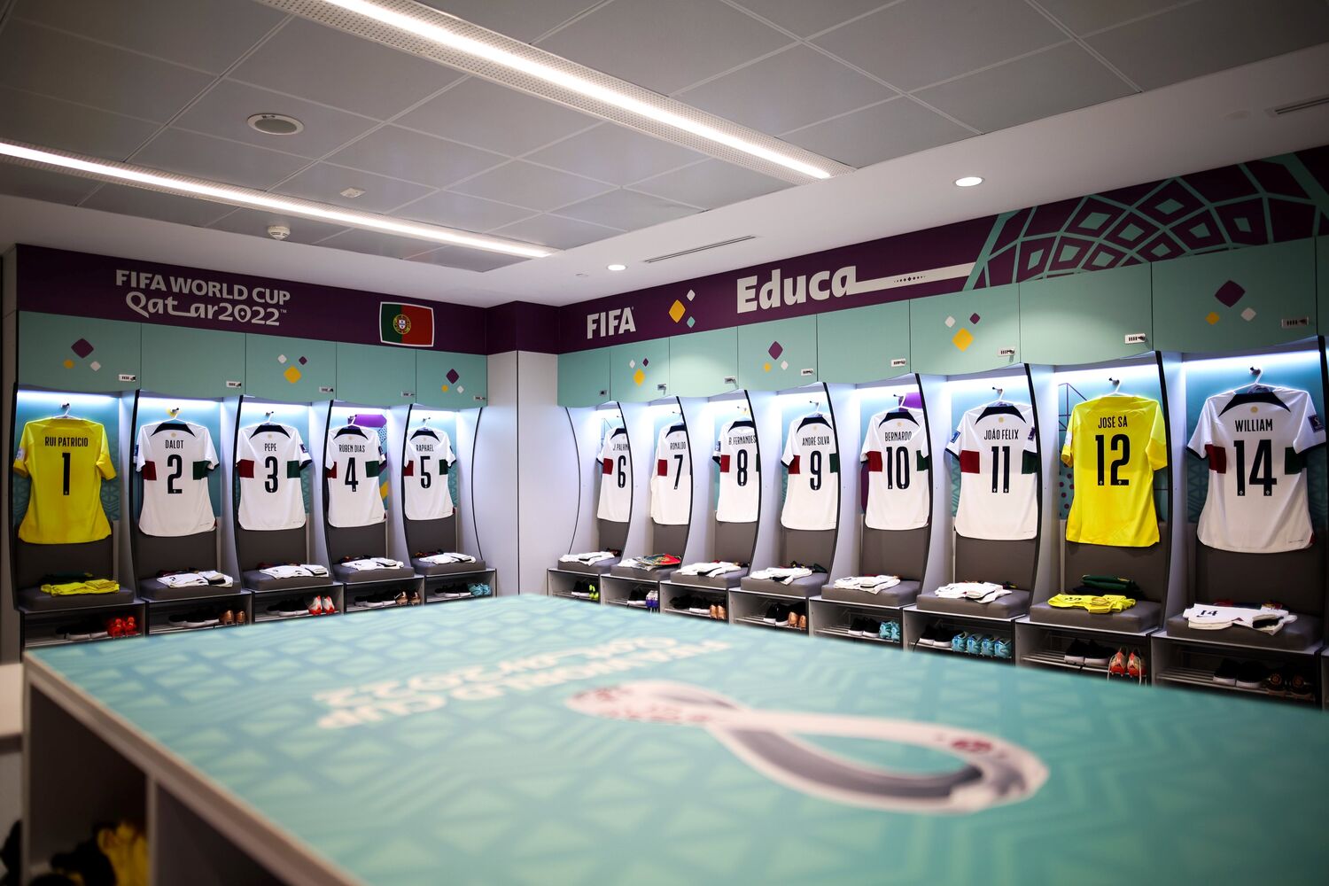 A Federação Portuguesa de Futebol divulgou esta sexta-feira imagens do balneário da equipa das quinas para o encontro do Mundial 22 frente à Coreia do Norte, às 15h00.O encontro entre as duas equipas vai ocorrer no estádio Education City, em Doha, e os jogadores portugueses vão apresentar-se em campo vestidos de branco. #VesteABandeira #WearTheFlag #FIFAWorldCup pic.twitter.com/HZwJaBi3ak— Portugal (@selecaoportugal) December 2, 2022 Este é o último jogo da fase de grupos. Portugal venceu frente ao Gana e Uruguai, pelo que já está apurado para os oitavos de final.