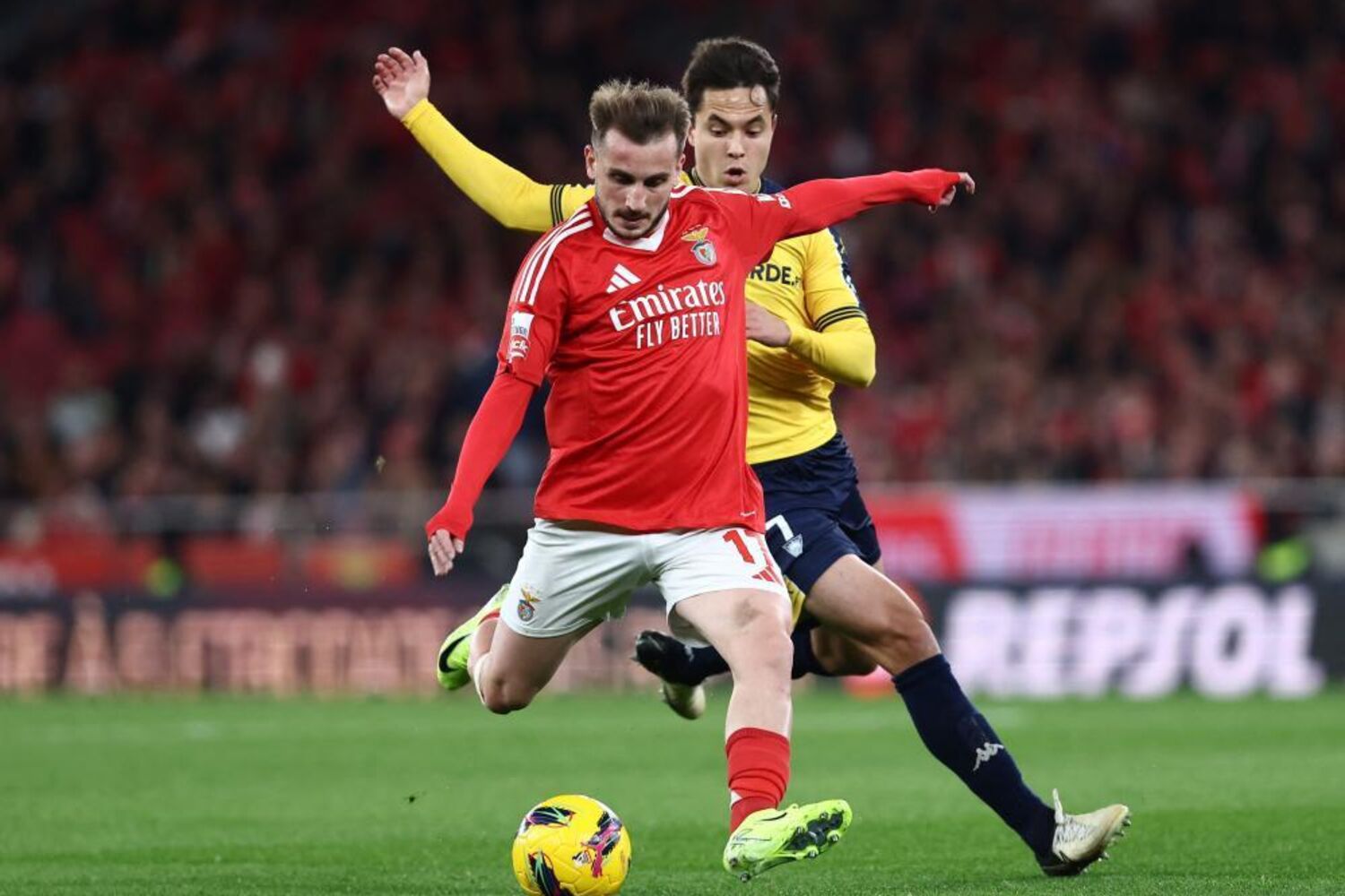 Remate defendido no lado esquerdo da baliza. Kerem Aktürkoglu (Benfica) remate com o pé direito no coração da área. Assistência de Ángel Di María.