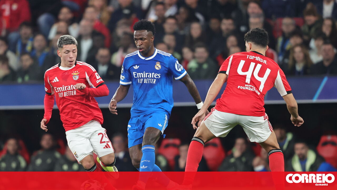 Cruzamento de Carreras, calcanhar e de Vinícius Jr e Mbappé... por cima. Respiram de alívio os benfiquistas, mas fica mais um aviso da equipa de Arbeloa.