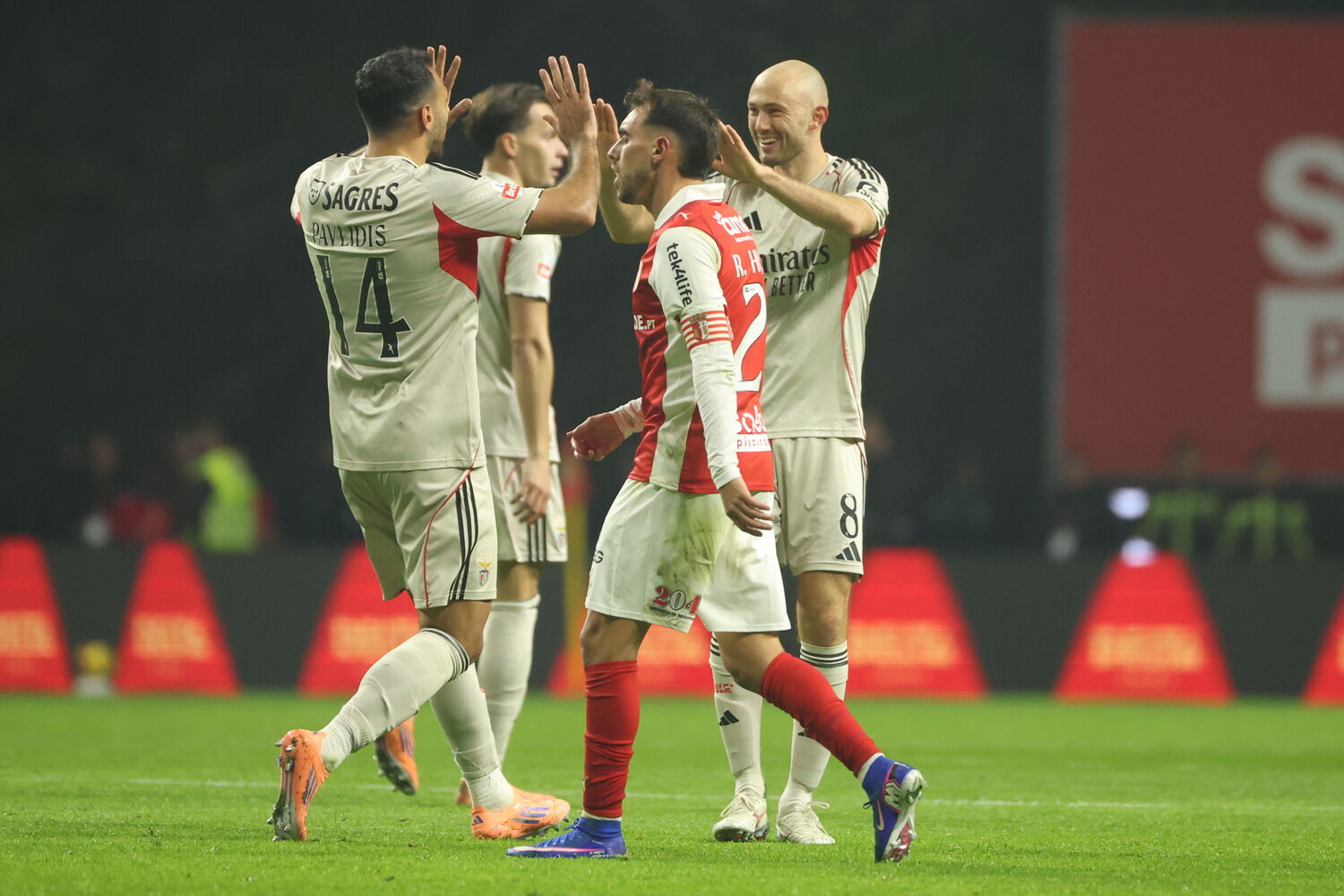 Os 'encarnados' estiveram na frente do marcador, com um golo do argentino Nicolás Otamendi, aos 29 minutos, mas o uruguaio Rodrigo Zalazar, aos 38, de grande penalidade, e o espanhol Pau Víctor, aos 45+1, operaram a reviravolta dos minhotos, antes de o norueguês Fredrik Aursnes fixar a igualdade final, aos 53.