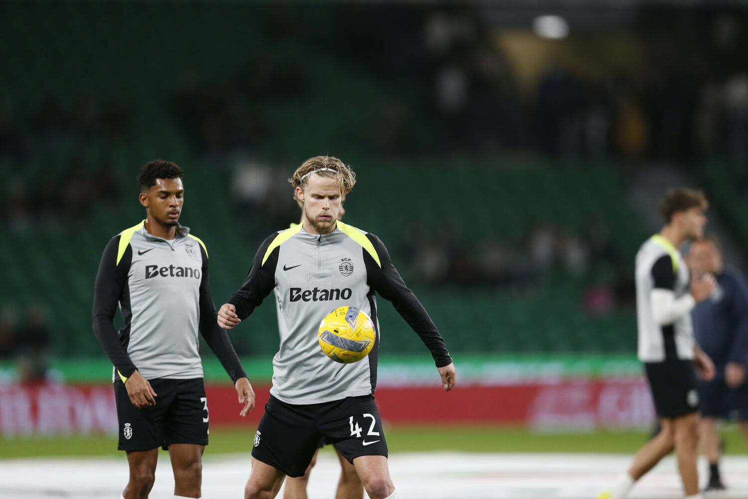 ONZE DO SPORTING: João Virgínia; Vagiannidis, Quaresma, Gonçalo Inácio, Ricardo Mangas; Hjulmand, Kochorashvili, Daniel Bragança, Trincão, Luis Guilherme e Luís Suárez.