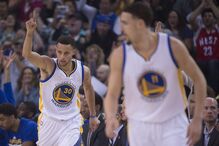A estrela dos dos Warriors, que marcou 26 pontos na segunda parte, acrescentou ainda cinco assistências e cinco ressaltos, rumo a um mais do que certo segundo título consecutivo de 'Jogador Mais Valioso' (MVP) da fase regular.