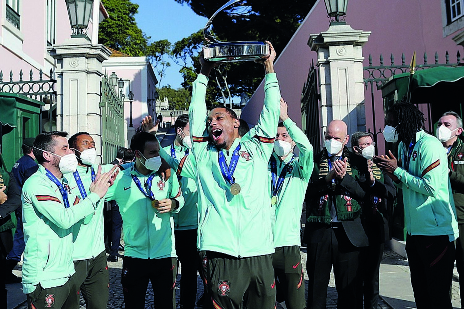 Marcelo Rebelo de Sousa comparou a vitória no Europeu aos fundos da bazuca que vão chegar a Portugal. "Estamos a entrar numa fase em que temos à nossa disposição não o paraíso ao virar da esquina mas muitos fundos europeus. Também aqui não temos mais tempo para além do apito final. E a vossa vitória é uma boa inspiração para o período em que estamos a entrar. Estão a ver como o futsal pode ser inspirador para todo o País?", sublinhou o Chefe de Estado, num recado ao próximo Governo.