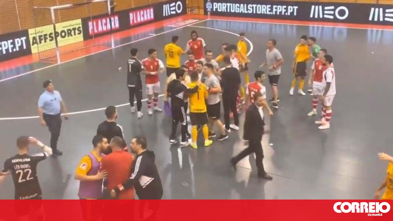 O jogo entre o Sp. Braga e o Benfica, esta segunda-feira, para a Liga Placard de futsal, acabou com agressões entre os jogadores de ambas as equipas e os elementos do staff. As imagens das agressões não chegaram a passar na televisão, mas foram divulgadas na internet.