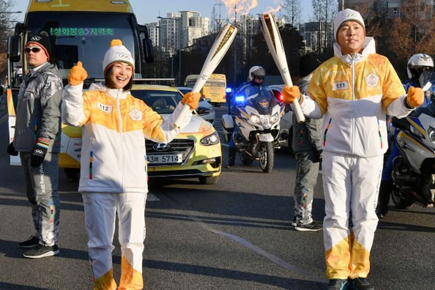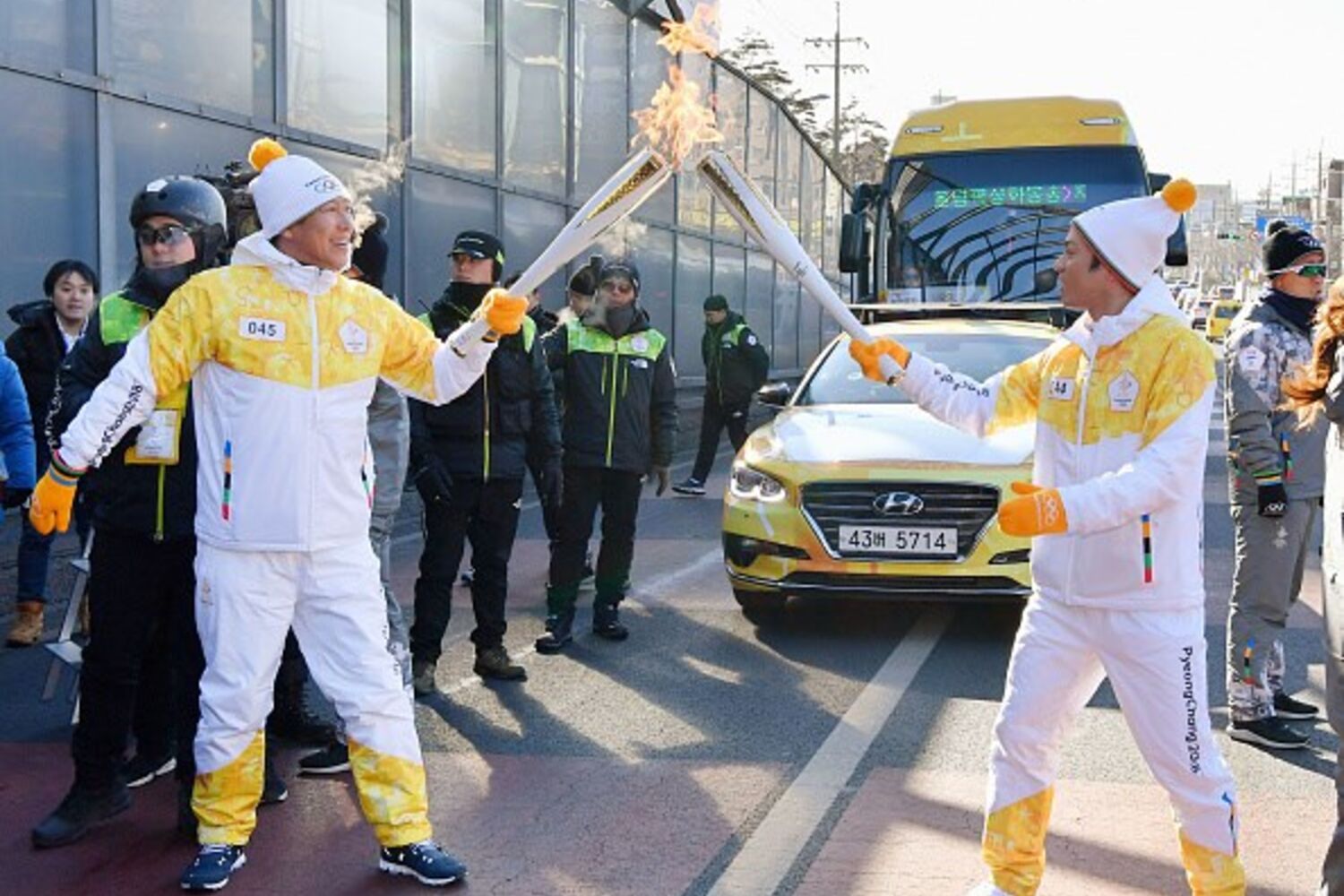 Meia hora depois a chama foi entregue à lenda do futebol sul-coreano Cha Bum-kun em frente do estádio do Mundial de Seul.
