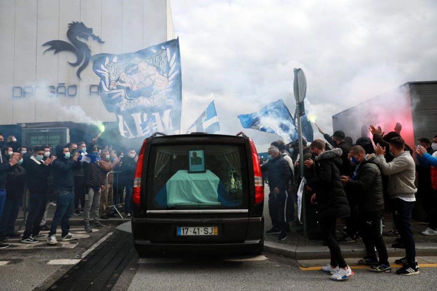 Entre as lágrimas de tristeza pela despedida ao guarda-redes luso-cubano, também se ouviram muitos aplausos e cânticos por parte dos adeptos do FC Porto, que receberam o veículo com a urna com o agitar de bandeiras e algumas tochas.