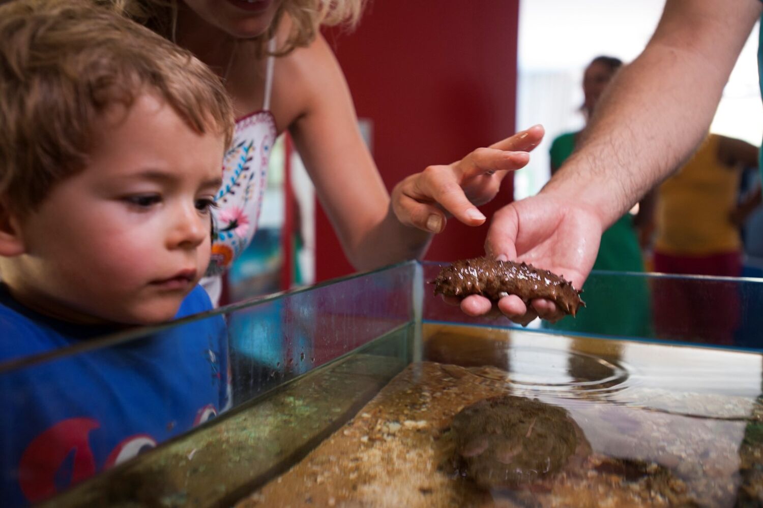 No apalpatório pode tocar em animais numa piscina que simula o habitat do fundo do mar.